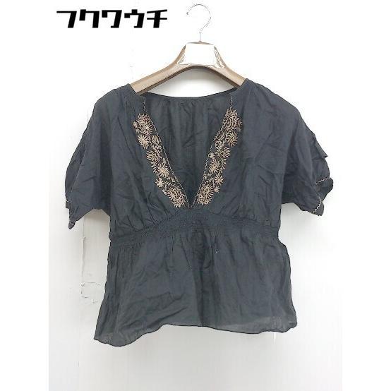 ◇ MACPHEE TOMORROWLAND トゥモローランド 刺繍 半袖 ブラウス カットソー サイズ38 ブラック レディース