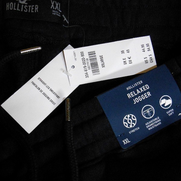 HOLLISTER*ホリスター*US:XXL/ブラック/ロゴ刺繍フリーススウェットパンツ