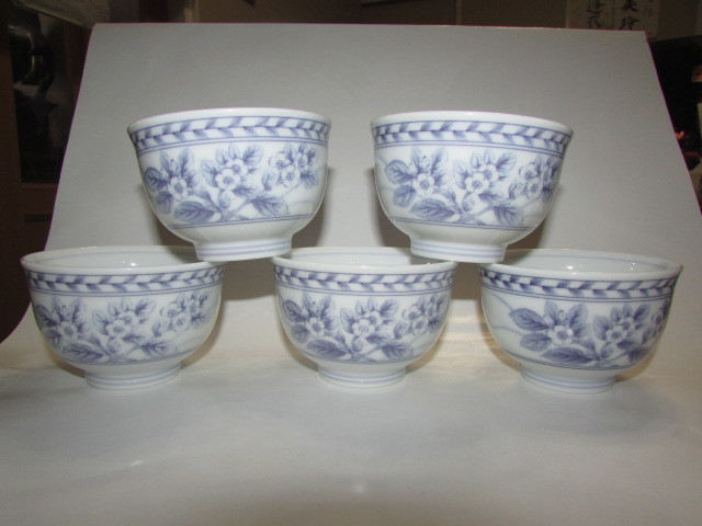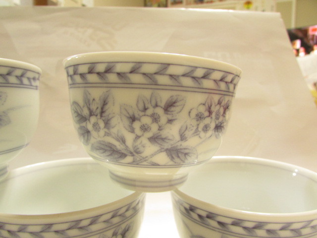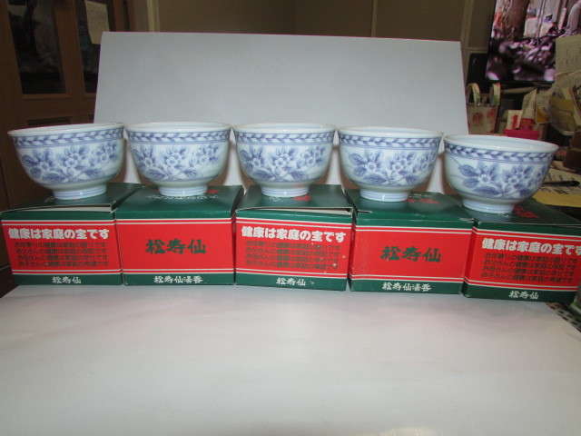 即決商品・( 昭和レトロな未使用・松寿仙・花模様湯飲み茶碗・5客 ) 未使用・NO1