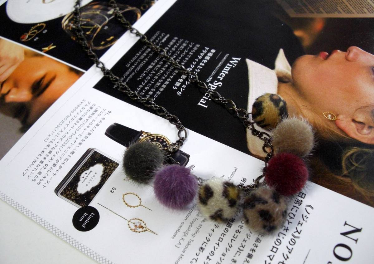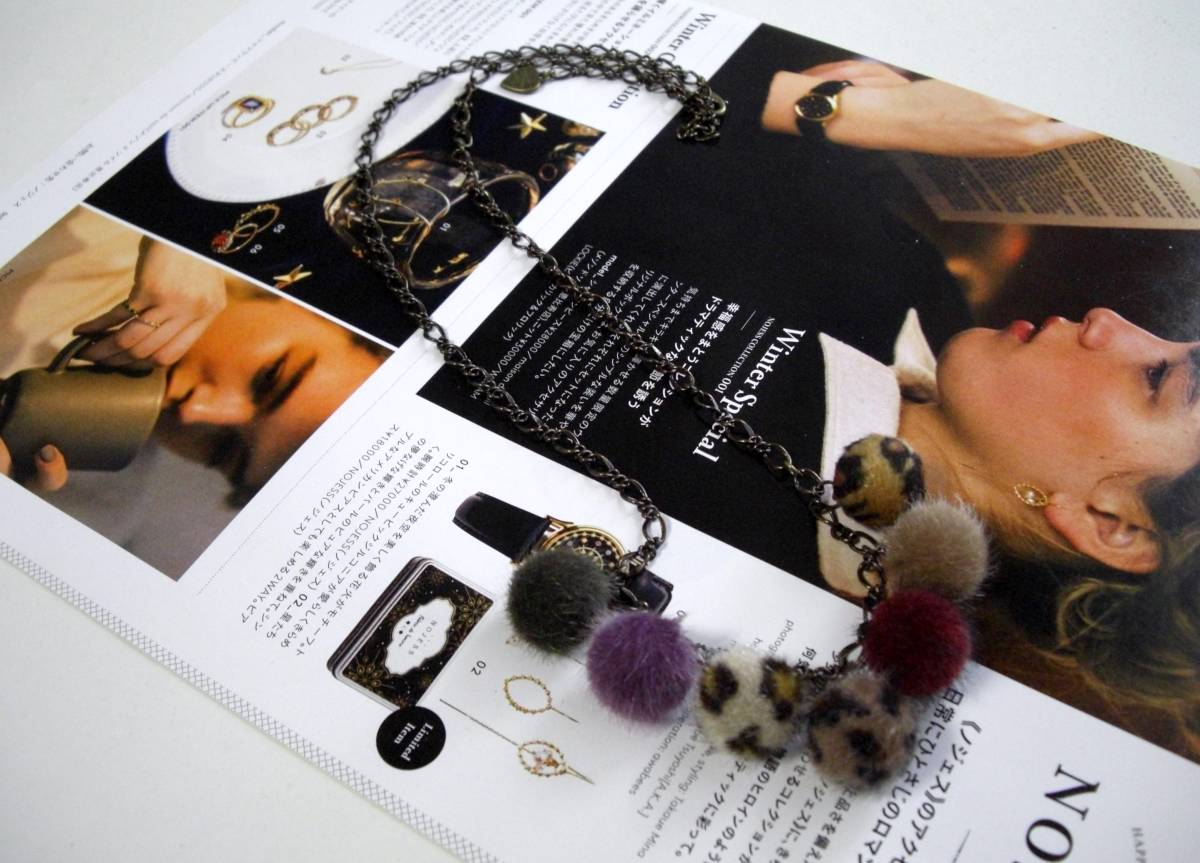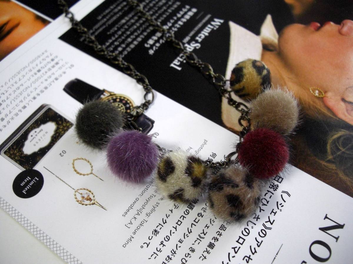 もうすぐバレンタイン・・お気に入りのファーボールを集めて・・シリーズです♪ ワインレッドやダークベージュやダークパープル,ヒョウ柄のファーボールを集めて遊び心のあるネックレスです♪15ミリ位のファーボールにデザインチェーンを合わせてシックな表情です♪長さは全長68センチ位で調節自由です♪お揃いのブレスレット、ピアスも出品しています♪ハンドメイドをご理解いただいてノークレーム、ノーリターンでお願いします♪