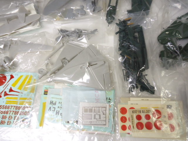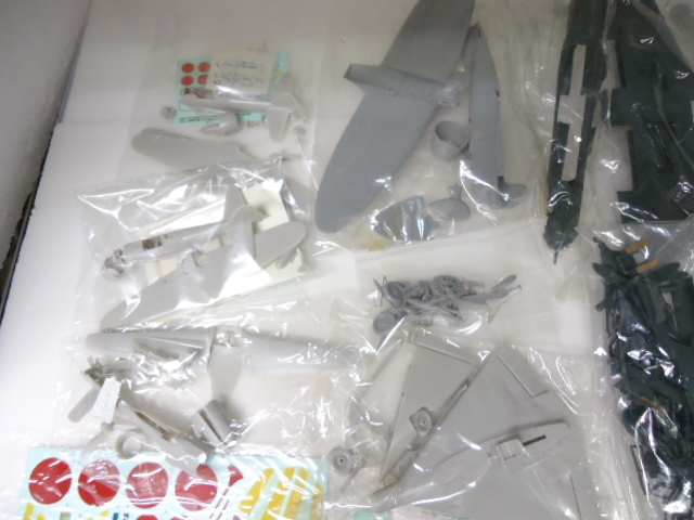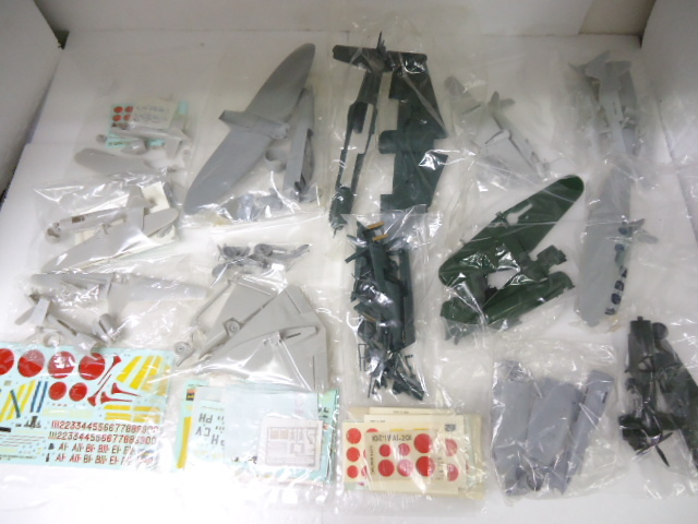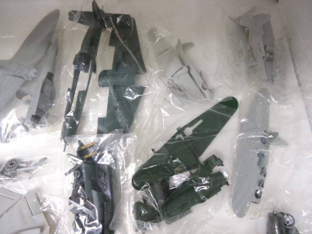 画像に写っているものが全てです。大体1袋に1機、大・小様々な組立て済みの戦闘機プラモデルが入っており10機前後のセットになります。かなりお買い得かと思いますが組立て済みにてパーツ・破損状態不明ですので完品をお求めの方は入札をお控え頂ければ幸いです。