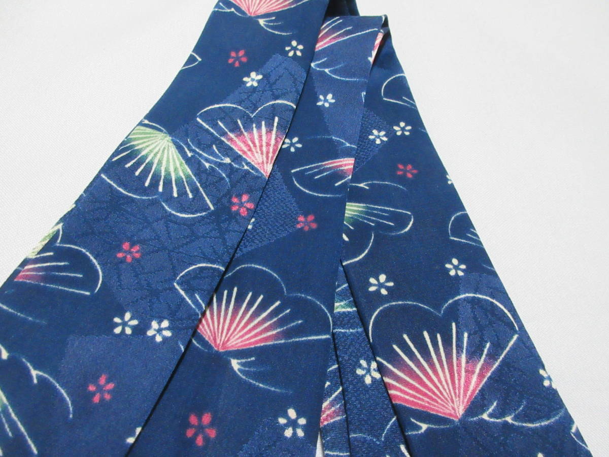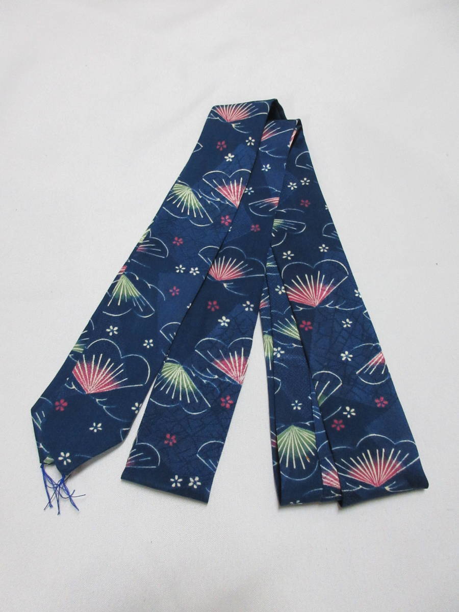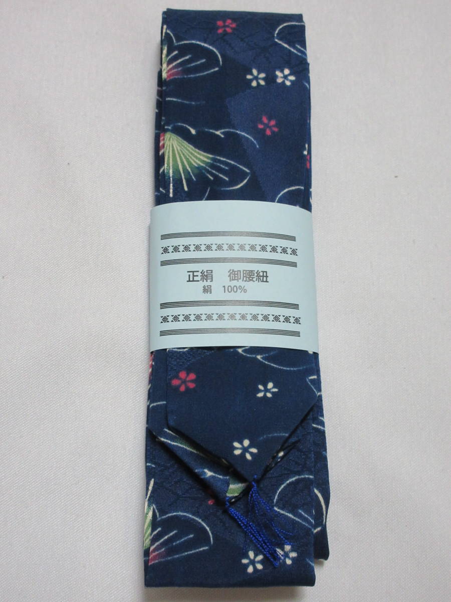 〇創作品 お洒落な腰紐 正絹 腰紐 襷(たすき)  長さ2.25m 巾 約5.0㎝ 紺地 ド0025