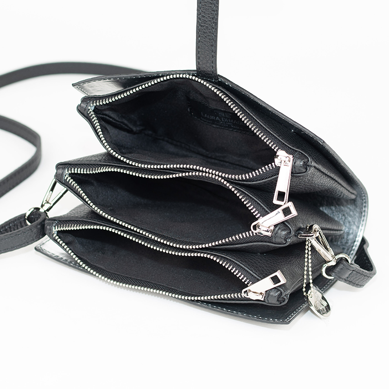 新品正規品【在庫処分】LAURA DI MAGGIO イタリア製 ショルダー 2WAY ミニ ブラック 3ジップミニ 送料無料Yahoo!かんたん決済 即決価格