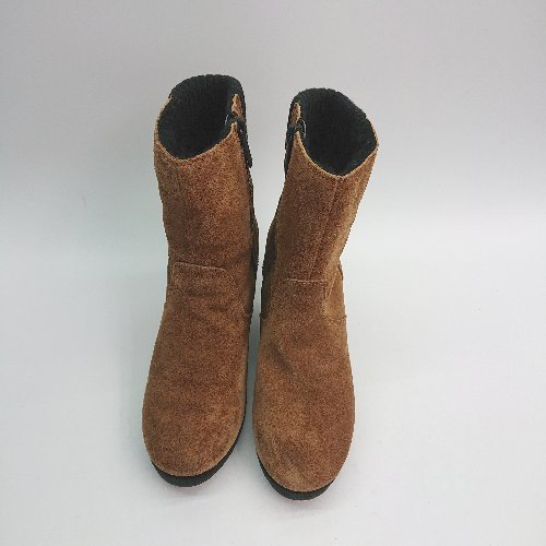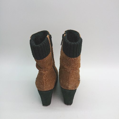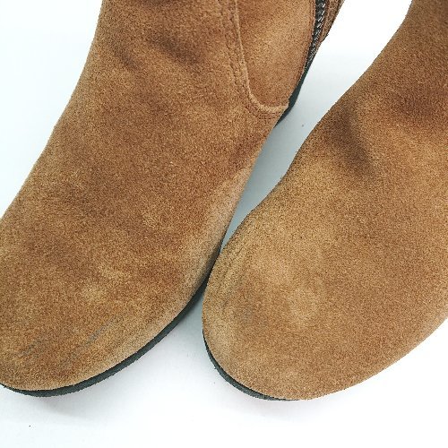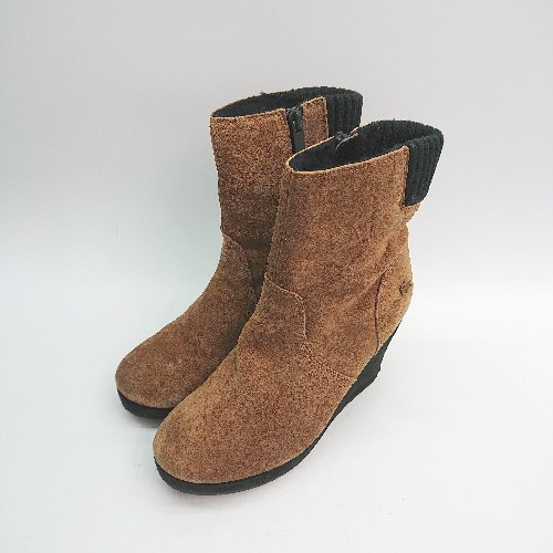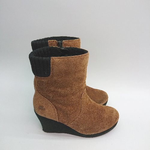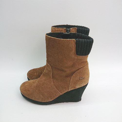 ■ lacoste ウエッジソール スエード サイドファスナー ニット ファー ショート ブーツ 表記なし ブラウン レディース E
