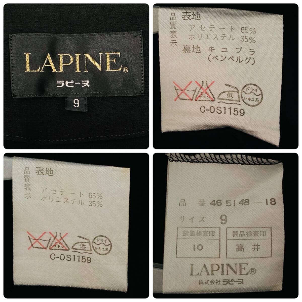 a03815 LAPINE ラピーヌ セットアップ ジャケット ワンピース 透け感 肩パット 長袖 裏地 9 黒 古着 上品 薄手 フォーマルイブニングウェア