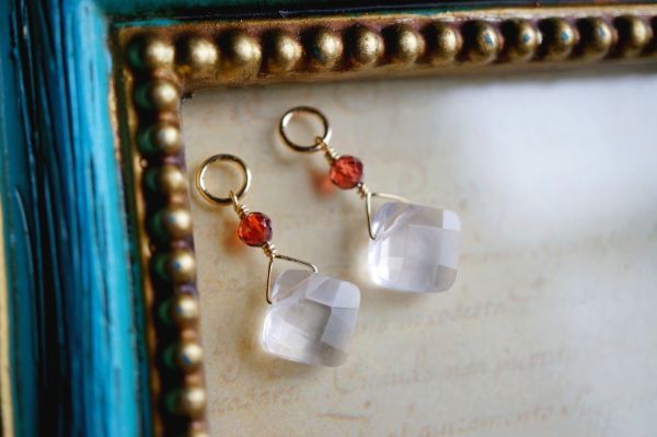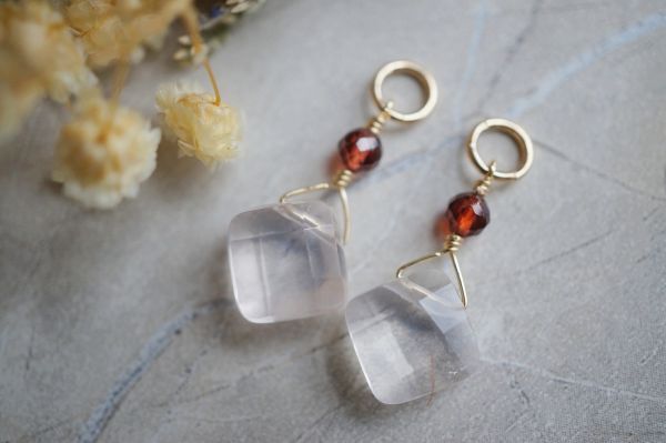 【フープ用チャーム】K14GF861 ローズクォーツ・ガーネット チャーム 1ペア /フープピアス・フープイヤリング・ピアリング ピアスチャーム