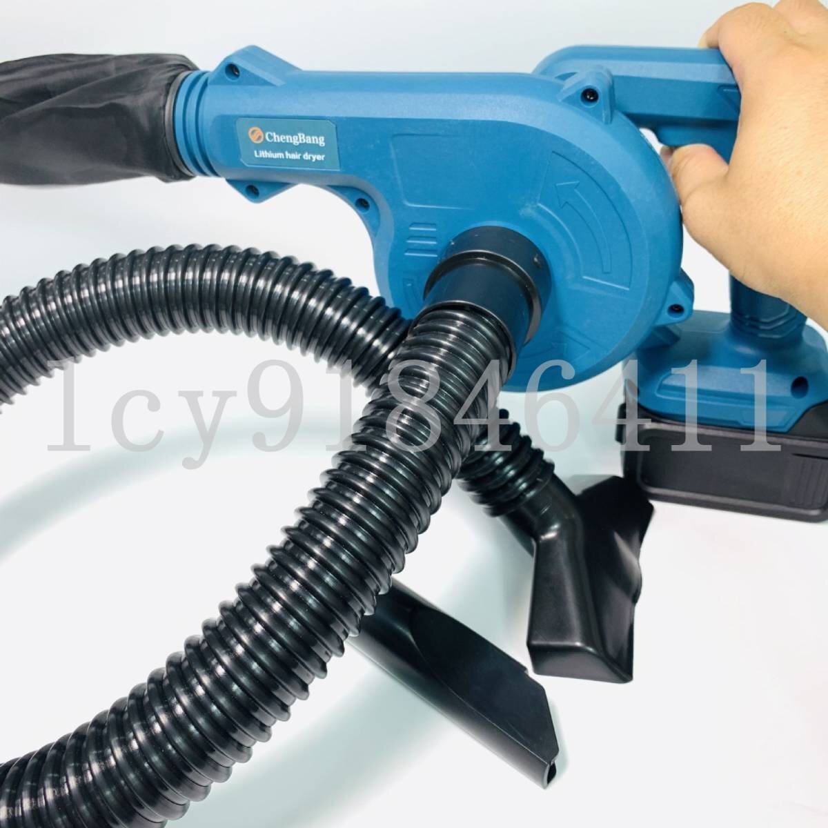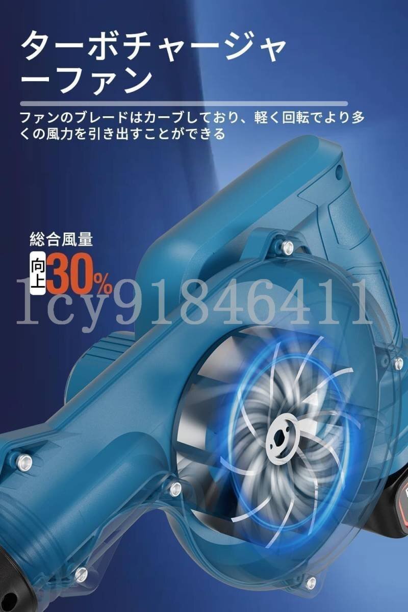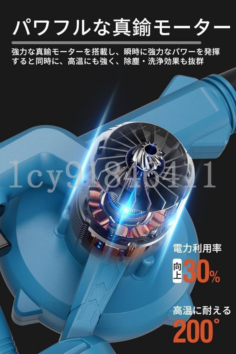 【500Wブラシレスモーター、安定した出力】500Wブラシレスモーターにより、最高回転数13,000rpm、出力風量2.6m?-4.4m?/minを実現しました。広い面積の落ち葉やゴミを、効率よく吹き飛ばしたり、回収したりすることができます。 無段変速機を搭載し、効率的で安定した送風・吸引が可能となりました。 【吐き出し・吸引兼用で、時間と労力を節約】セットアップが非常に簡単で耐久性にも優れ、わずか2ステップで吸引にも対応。 重さ0.8kgのハンディブロワは、片手で簡単に操作可能で、お年寄りや女性にもご利用いただけます。持ちやすく、操作しやすいバランスのとれたデザインにより、肩への負担が軽減され、作業は楽になります。 従来の手作業による清掃作業に比べ、10倍以上の効率化が実証されました。 【ブロワー用途】落葉掃除、車の掃除、ケースのほこり、庭の掃除、工業掃除、家庭の掃除、コンピュータやその他の電気製品に蓄積されたほこり、布団、壁の隅、死角、ベッドの底、カーペット、ペットの毛、家具、毛髪のゴミなどを簡単に吸い取ります 【使用分野】屋外での落ち葉・芝などの吹き飛ばし、ホコリ・チリなどのゴミの吸塵、水切り等に使用可能です。洗車をした時の乾燥作業も布などで塗装を傷つけずにバッチリ! 【デザインメリット】(1)高耐久モーター採用、仕事の効率がアップ。(2)ノズルの差込場所を変更すれば、吹き飛ばしと集塵の1台2役です。(3)無段階風量、作業に応じた風量の調整が可能です。(4)バッテリーを電源として使用出来る充電式のデザインです、使用場所を選らず、どこでも持ち運べて便利に作業できます。【注意事項】:吸塵の際は、鋭利な物、濡れた物、石・砂利、金属片は吸い込ませないでください。 用途:農機具、木工機械の清掃、作業場所の集塵・吸塵・洗浄後の水滴の吹き飛ばし、乾燥作業などです。 【注意事項】:吸塵の際は、鋭利な物、濡れた物、石・砂利、金属片は吸い込ませないでください。