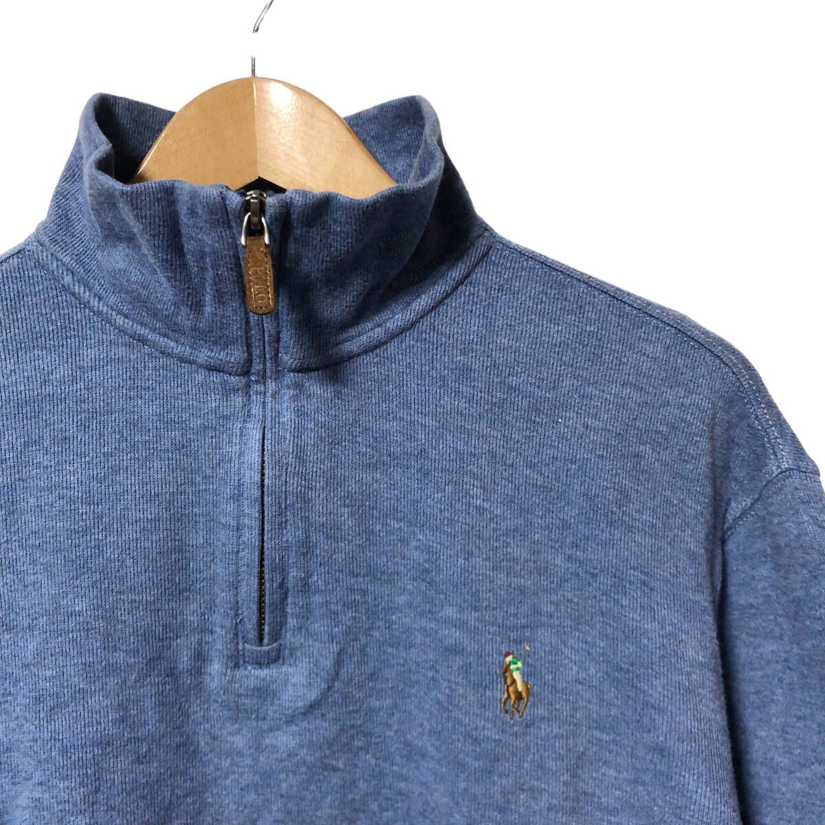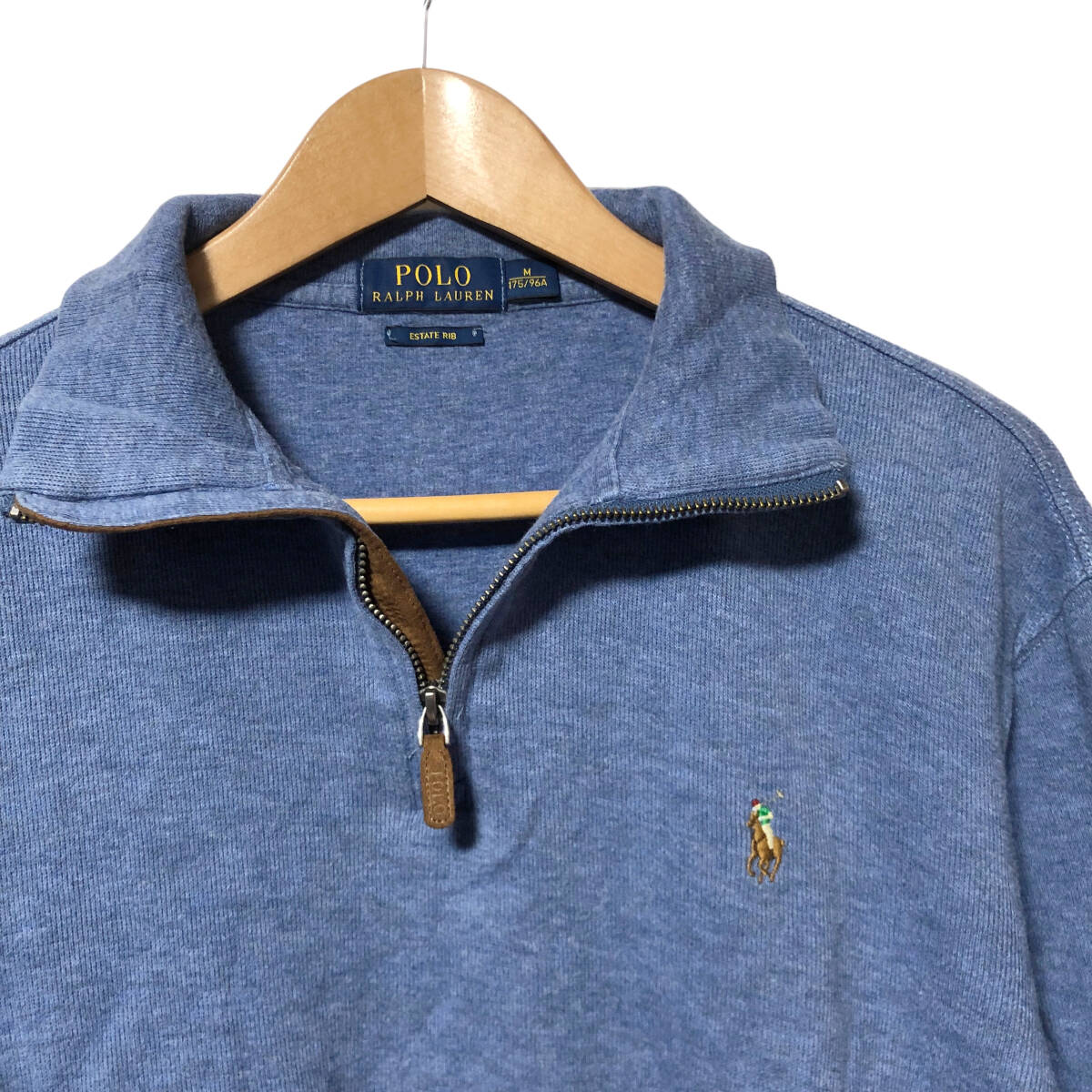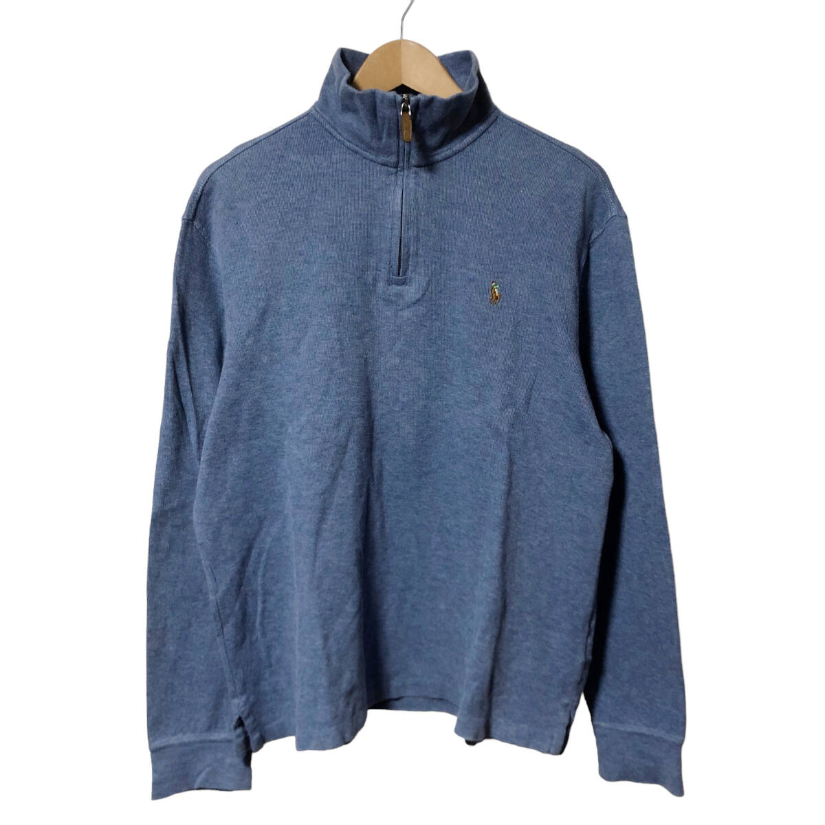 POLO RALPH LAUREN ポロラルフローレン ハーフジップ スウェット M ブルー ポニー刺繍 ESTATE RIB メンズ A13