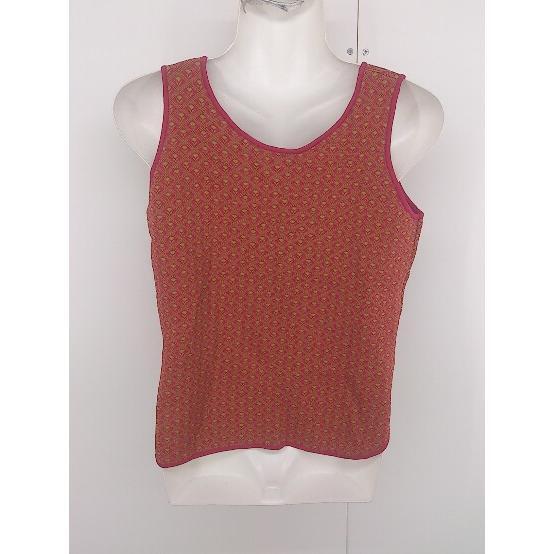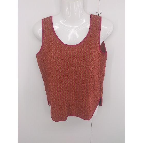 ◇ LOWRYS FARM ローリーズファーム 総柄 レトロ柄 ニット タックトップ サイズF レッド グリーン系 レディース P