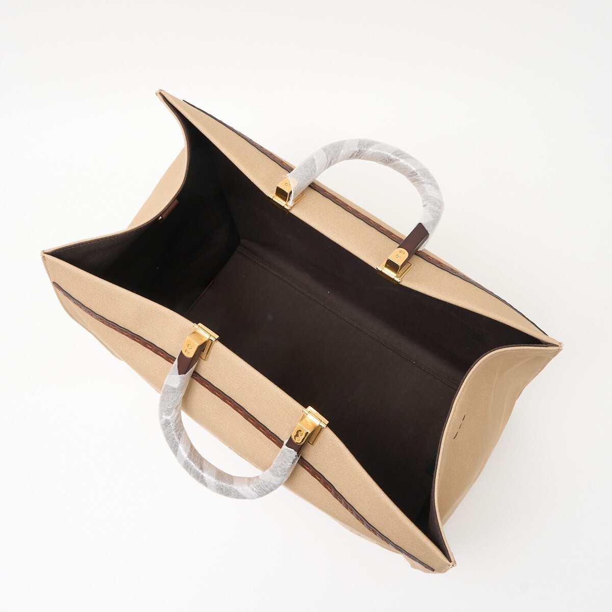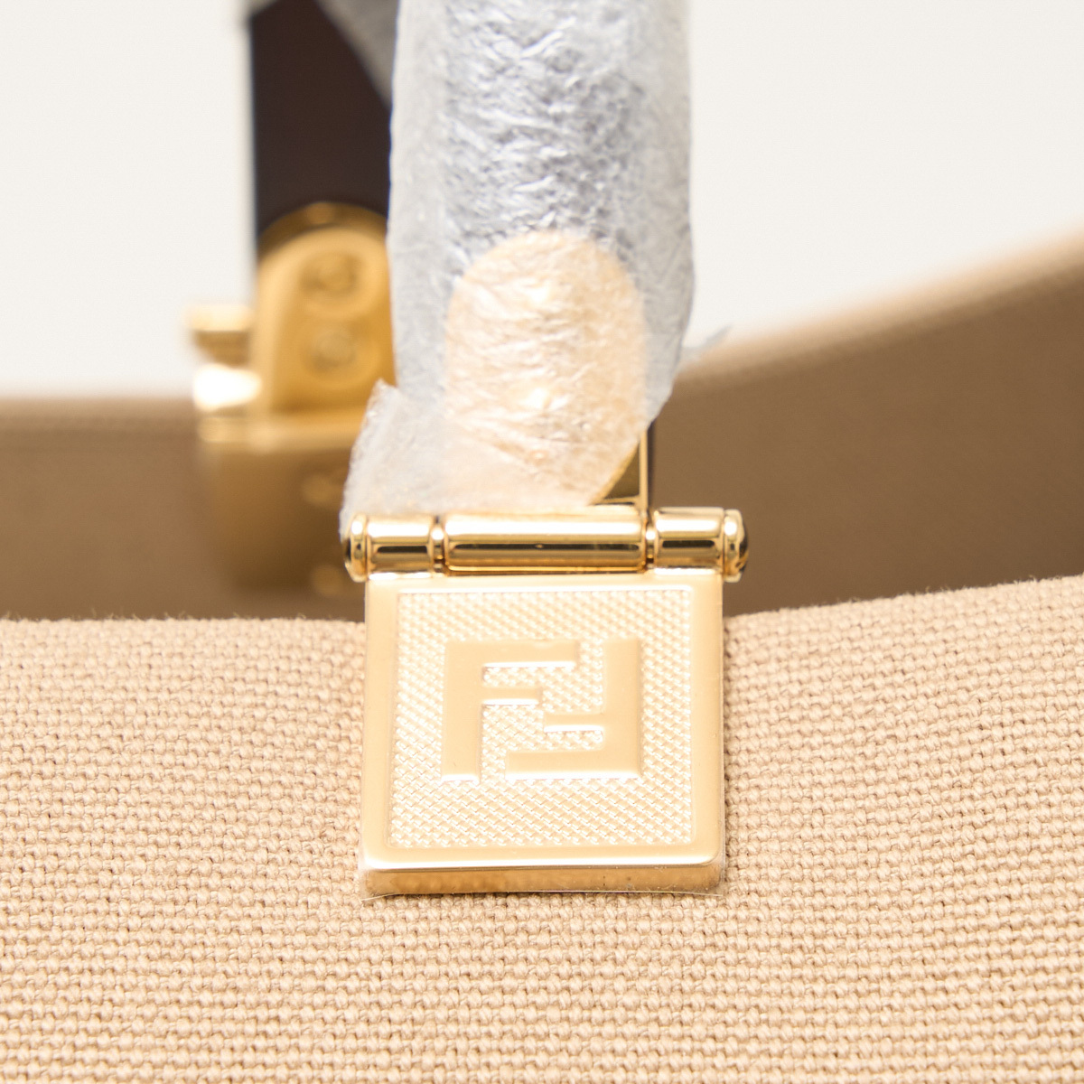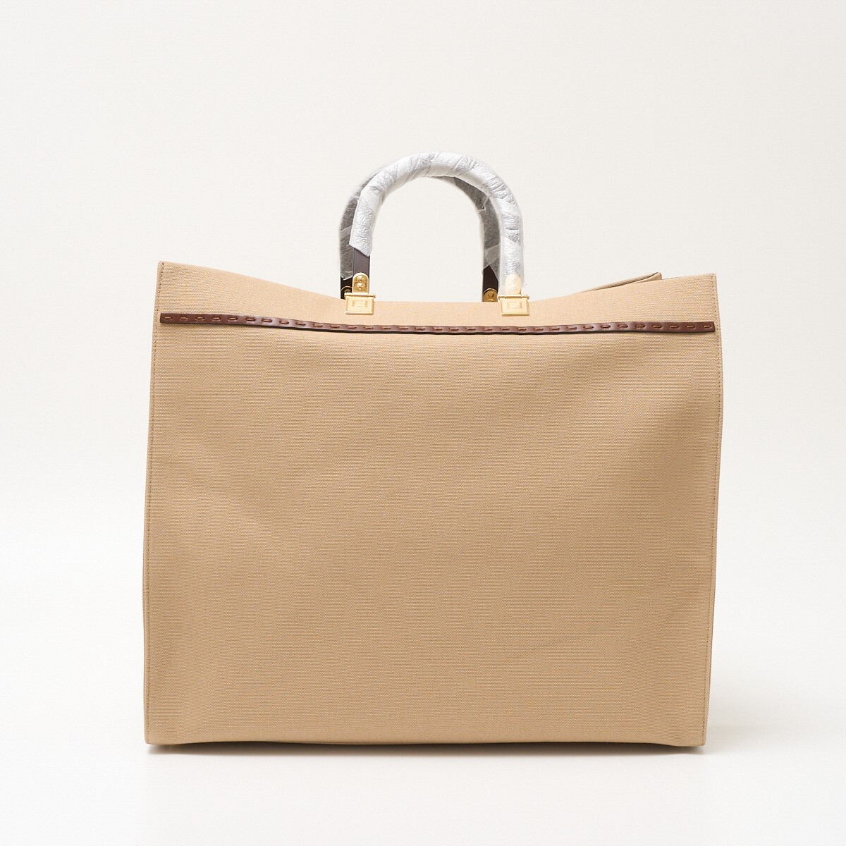 FENDI フェンディ サンシャイン ラージ 8BH372 ABVV F1E1A ハンド トートバッグ キャンバス×レザー ベージュ×ブラウン×ゴールド金具