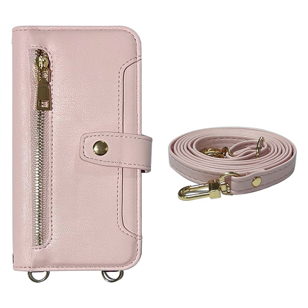 iPhone12 Pro Max アイフォン12プロマックス スマホケース(手帳ピンク)斜めがけ スマホショルダー 手帳型 ストラップ付き くすみカラー