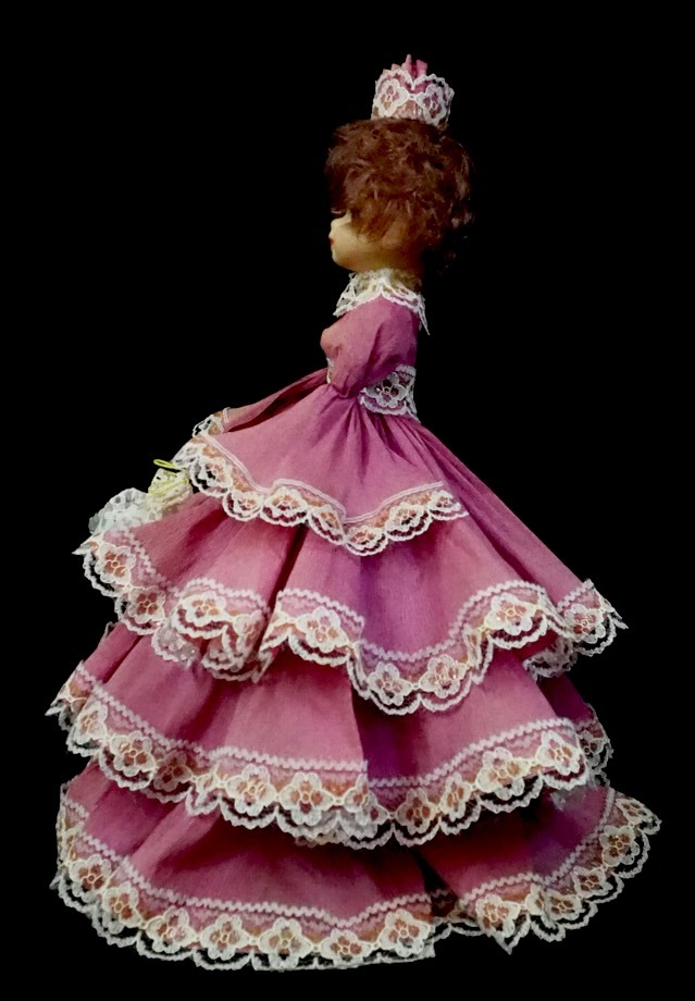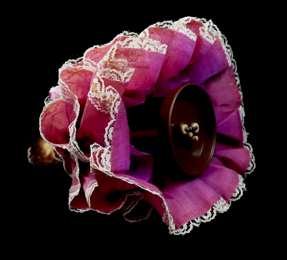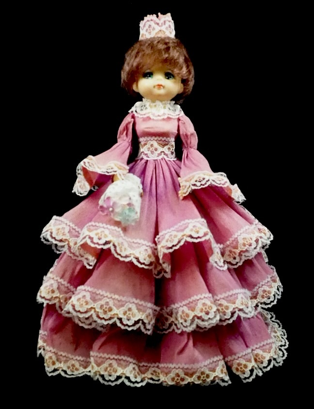 昭和期ビンテージ レースのピンクドレス人形 置物 1970年代