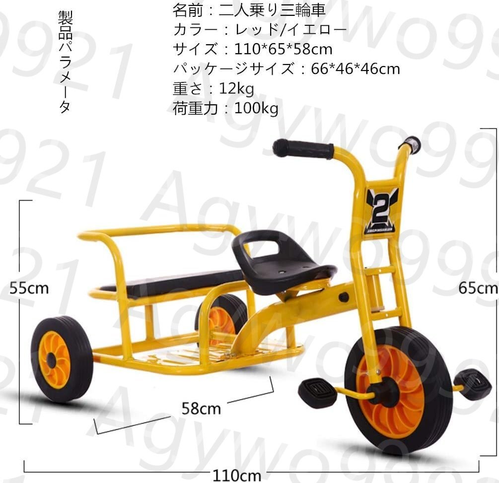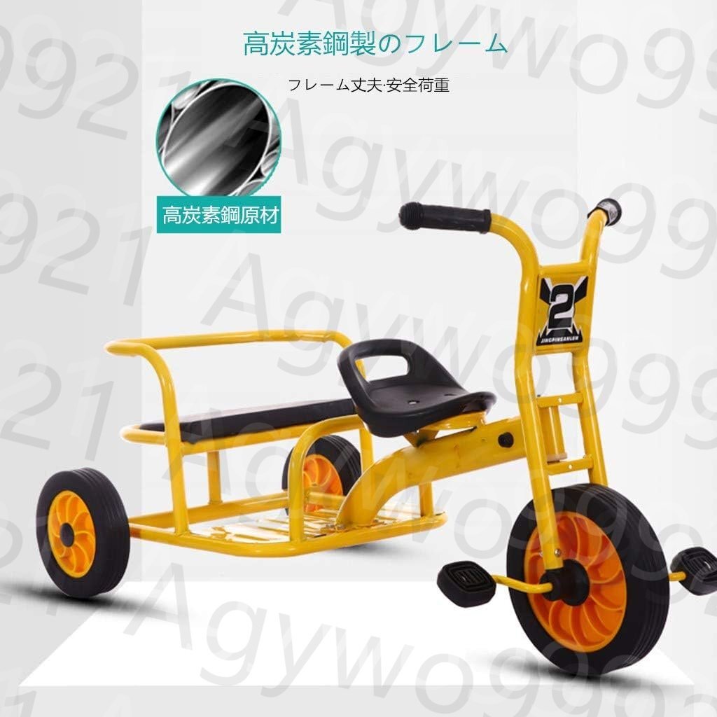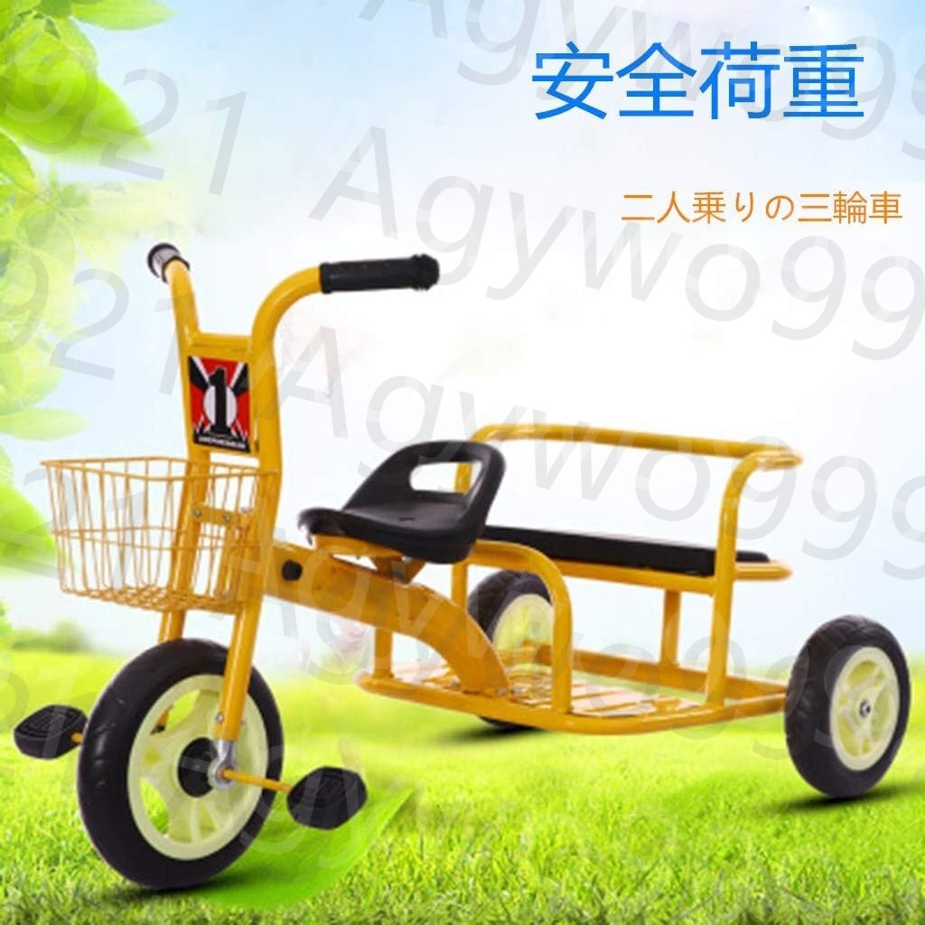 【双子用】双子でも、兄弟でも仲良く使える軽量タイプの二人乗りの三輪車、スチールフレーム、最大荷重 100kgの高負荷ベアリング、1歳から4歳の子供向けです。シンプルな操作性がそのままツインシートになりました!