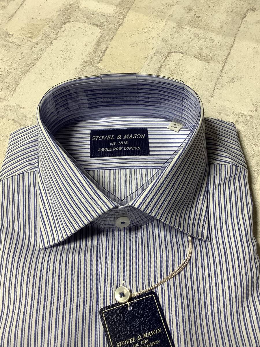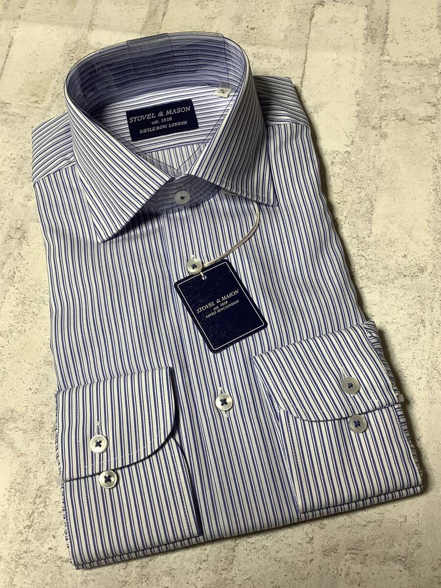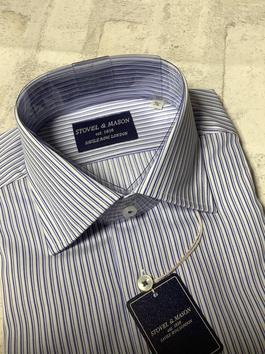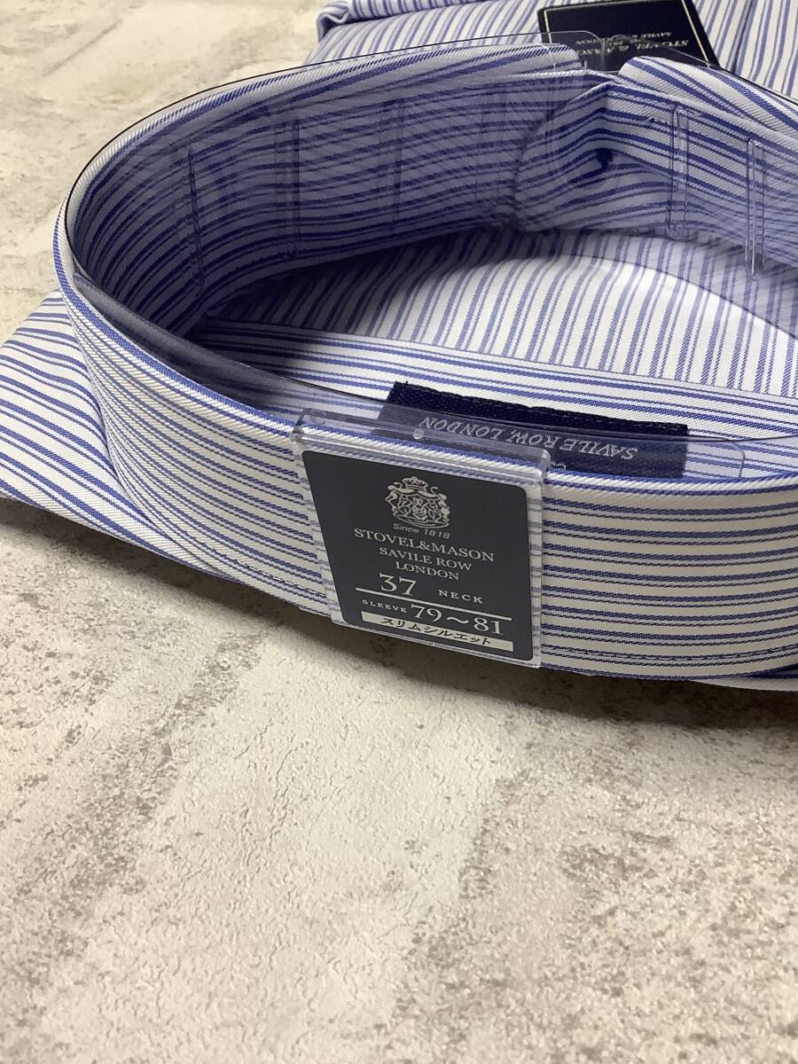 新品 やや細身の37-81 長袖Sサイズ ★ブルーストライプドレスシャツ ワイド 定価6,990円の品 綿100%ワイシャツ