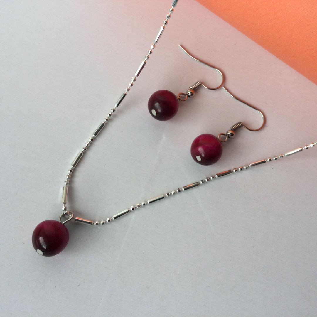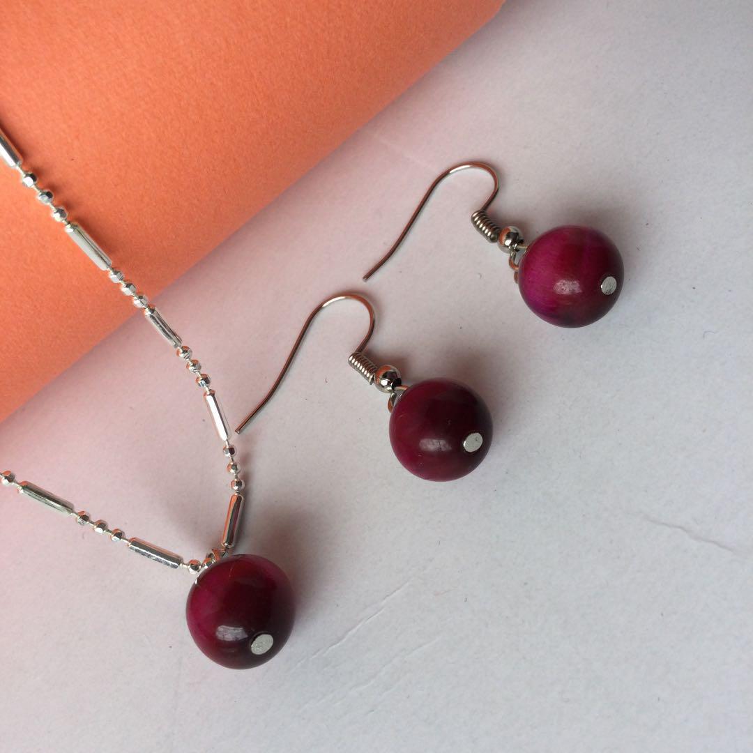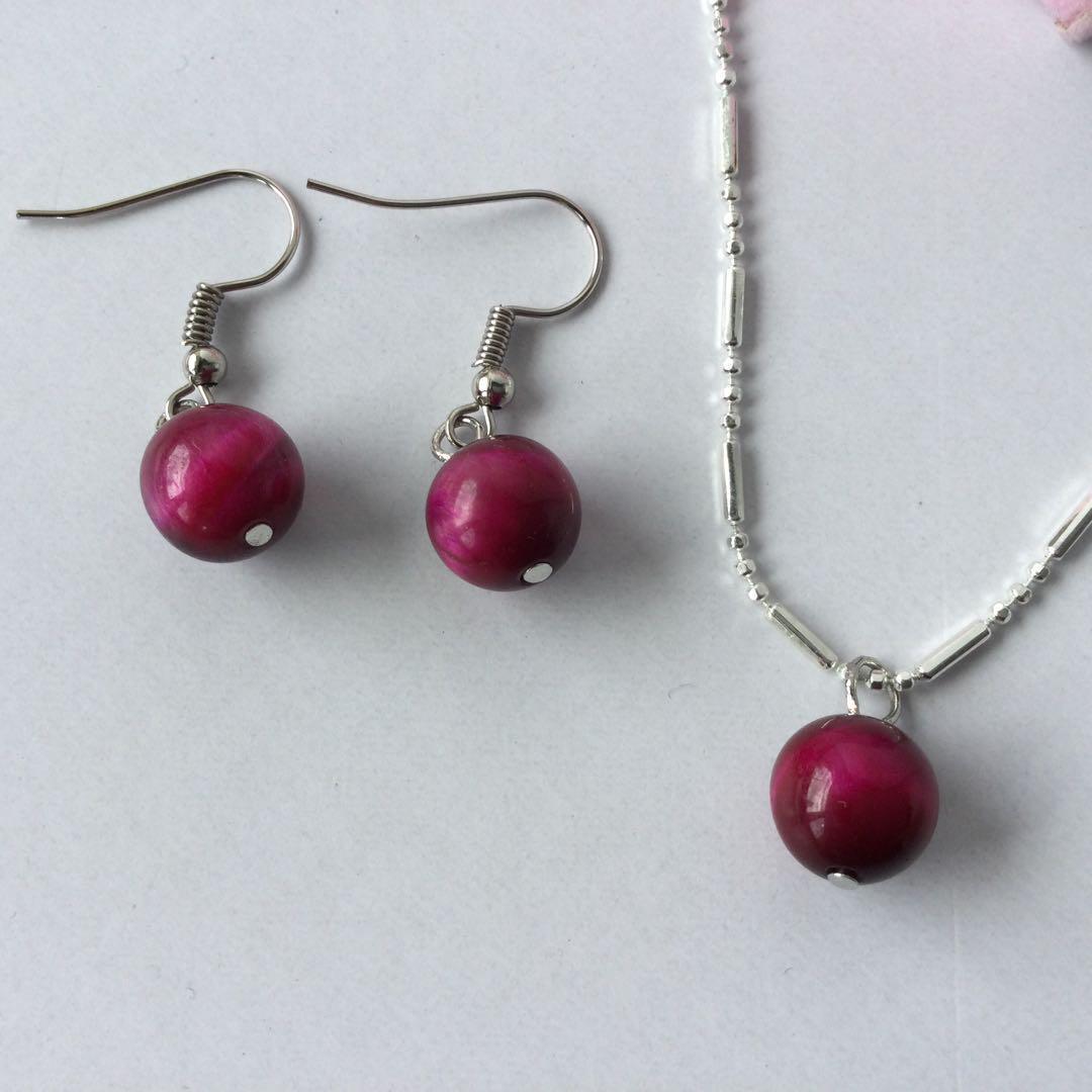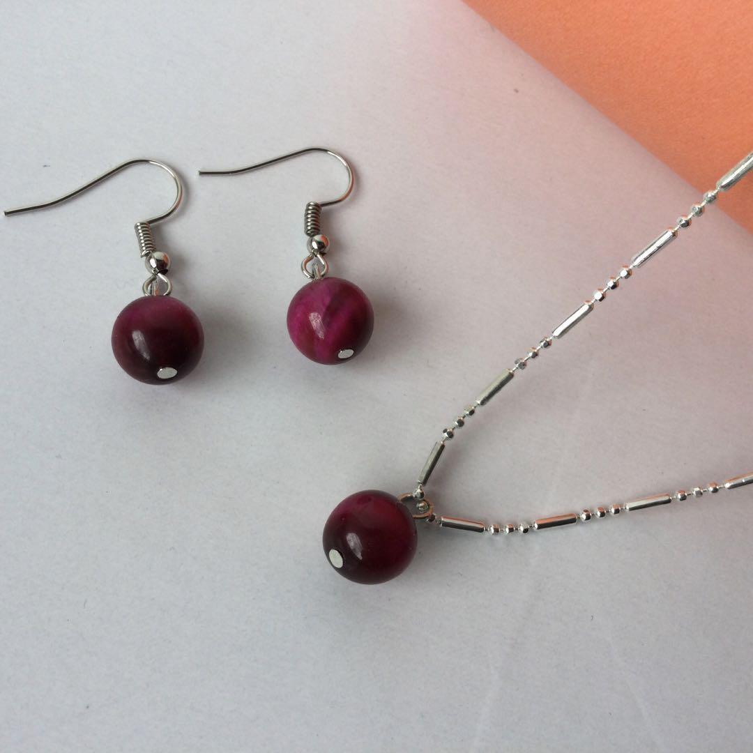 爽やかな人気柄ローズタイガーアイネックレス&ピアスセット大玉約10mm【目玉品買い得・現品限定】