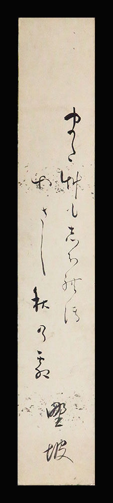 紙本肉筆未装短冊1葉 銀砂子散料紙 作品寸法:35.8cm x 6.0cm 商品状態:良好な保存の品です。 志太野坡(しだ-やば) 江戸前期の俳人。越前の人。江戸に出て、越後屋両替店の番頭となる。貞享二~三年(一六八五‐八六)ごろ、芭蕉の門にはいる。初号野馬、別号樗子、無名庵など。蕉門十哲の一人。元祿七年(一六九四)小泉孤屋(こおく)、池田利牛(りぎゅう)とともに「炭俵」を編纂。作風は「かるみ」をもっぱらとし、平淡で庶民的。芭蕉没後、大坂に移住、上方および中国・九州地方に蕉風をひろめた。句集に「野坡吟艸」がある。寛文二~元文五年(一六六二‐一七四〇) 出典:精選版 日本国語大辞典 |