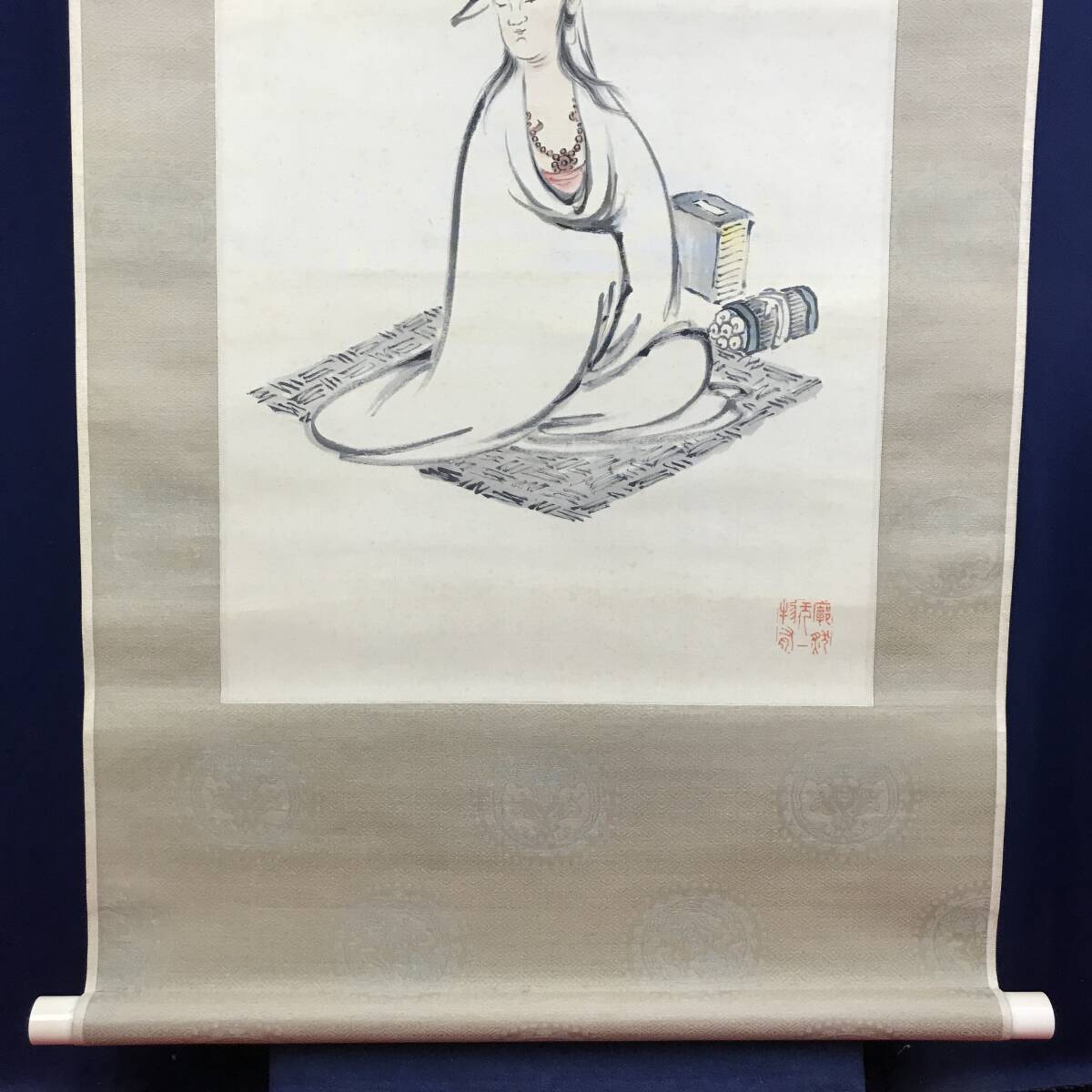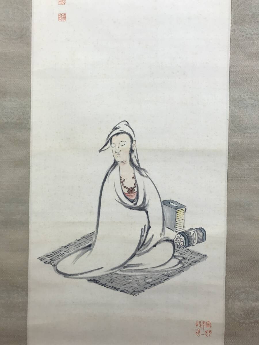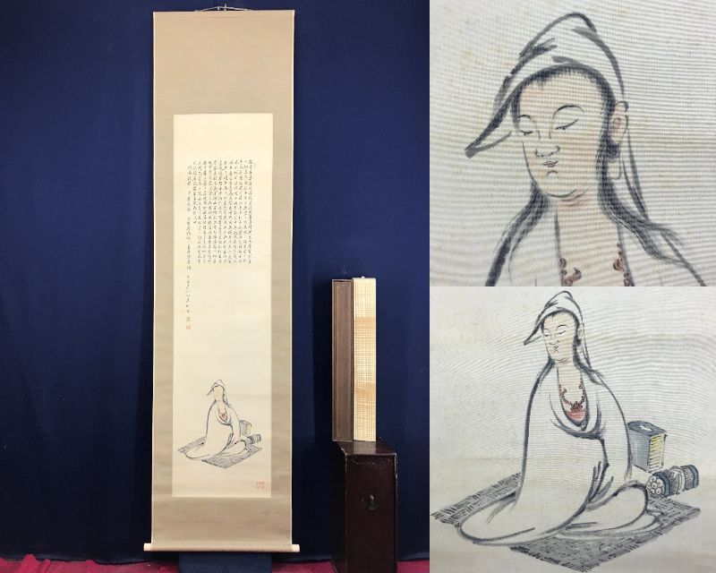 真作/田中柏陰/観音像/般若心経/仏掛軸/人物図/掛軸☆宝船☆AF-225