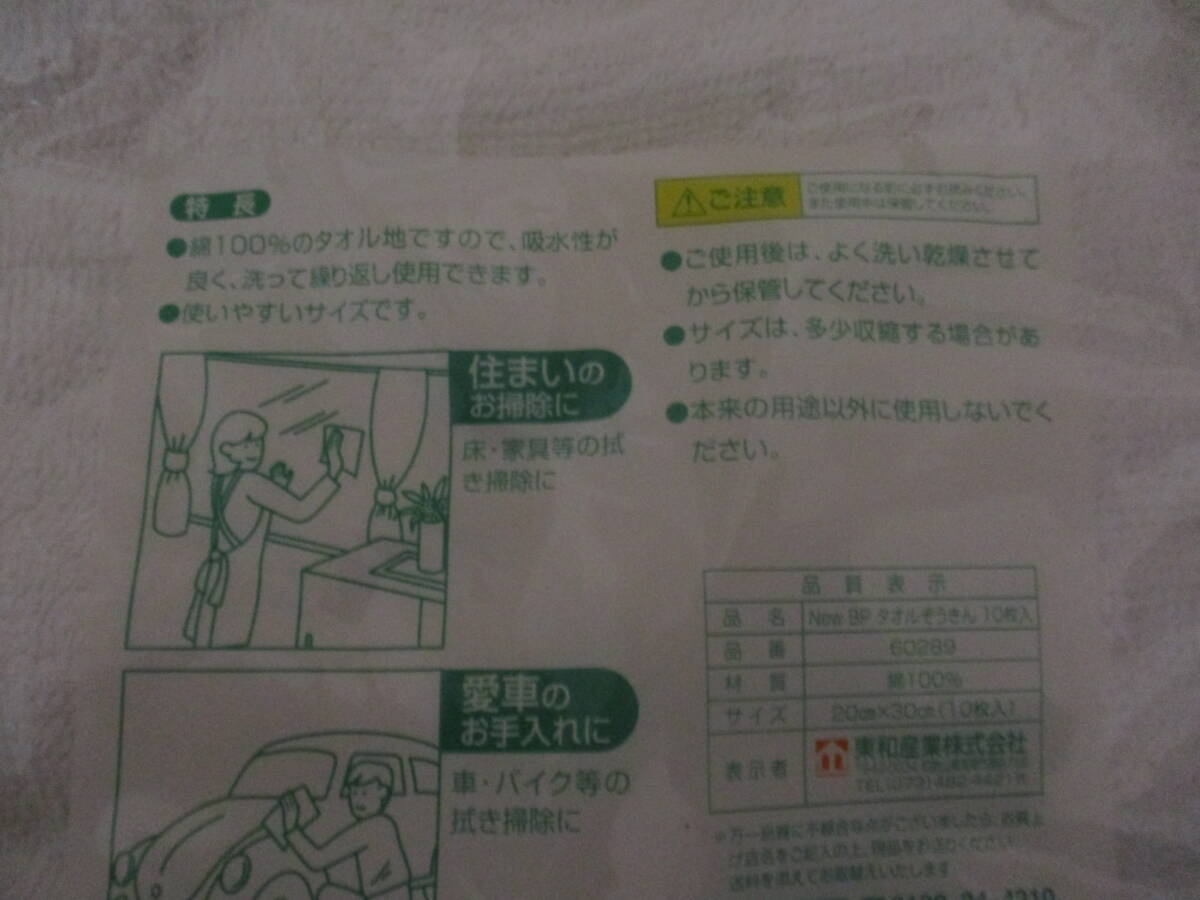 東和産業(株) New BPタオルぞうきん 4袋×4 計40枚 入数:1袋(10枚) お得なお値段で、お得な10枚入り/袋 吸水性抜群 材 質:綿100% サイズ:20cm×30cm 【特長】 ●綿100%のタオル地ですので、吸水性が良く、洗って繰り返し使用できます。 ●使いやすいサイズです。 【用途】 ●住まいのお掃除に ●愛車の拭き掃除に ●事務所、店舗、学校、工場の拭き掃除に。 ■発送詳細 ゆうパック ノークレーム、ノーリターンでお願いします。 疑問点がございましたらお気軽にご質問してください。 他にもいろいろ出品しておりますので是非見て下さい。 |