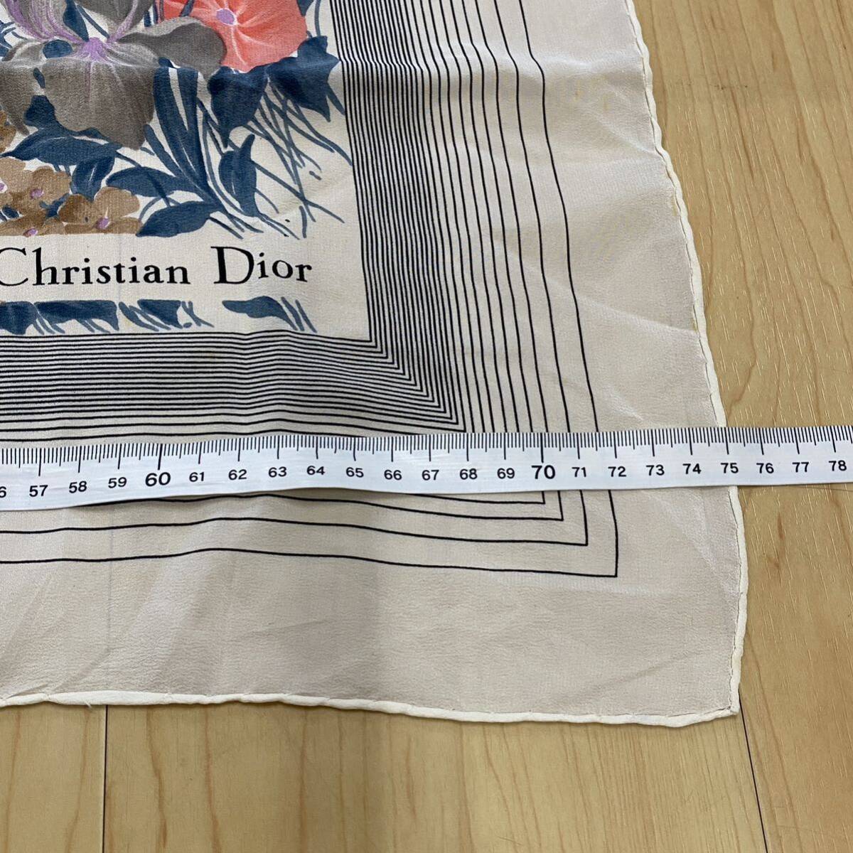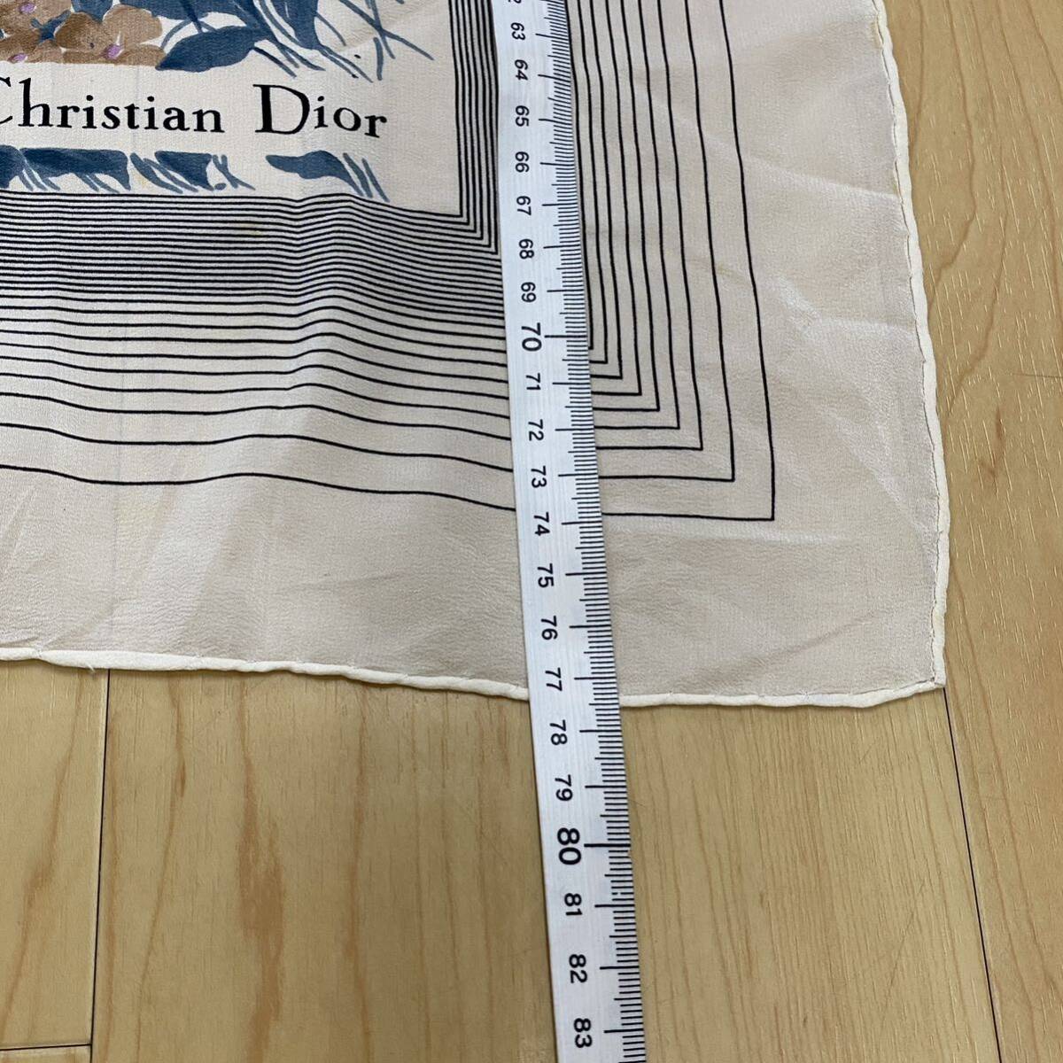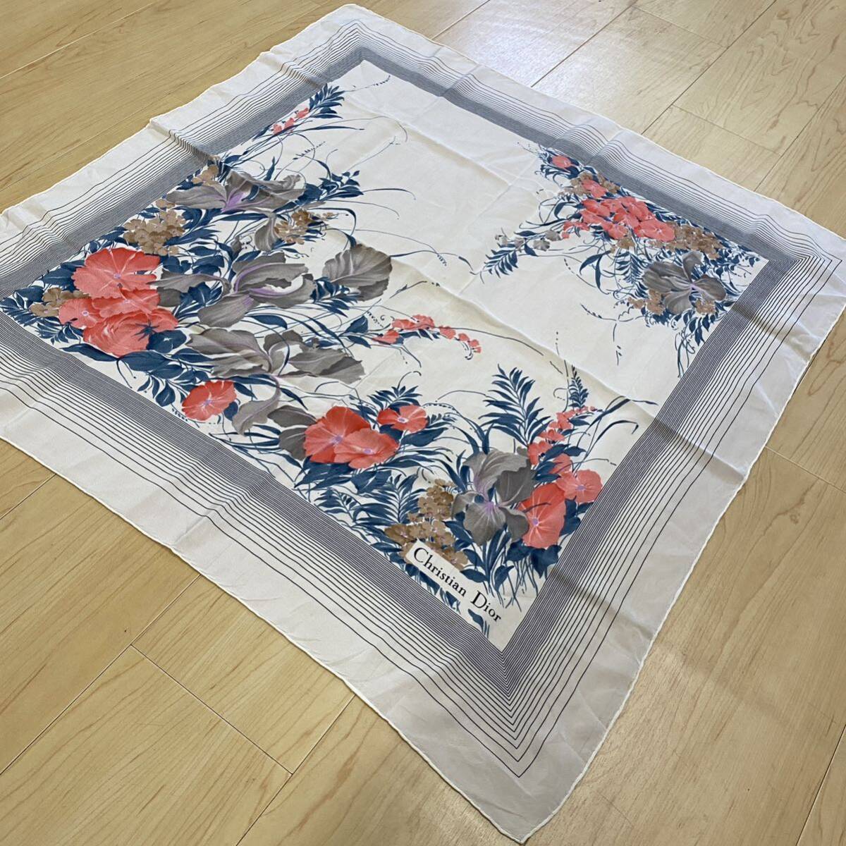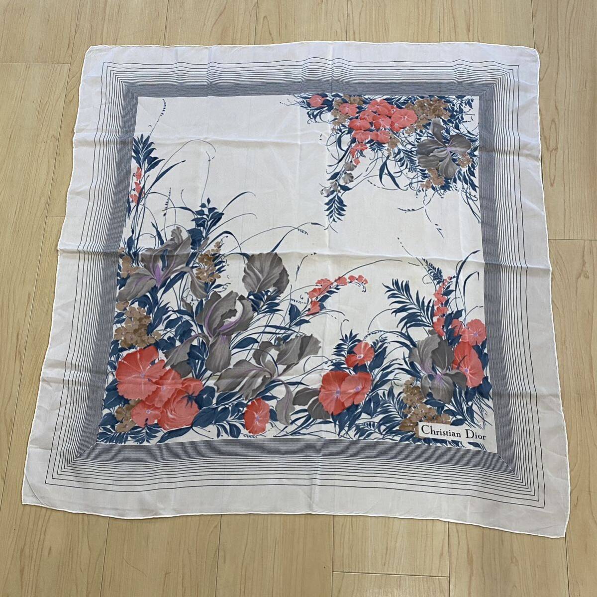 Christian Dior クリスチャンディオール スカーフ 花柄 寒色系 オフホワイト グレー  no.26