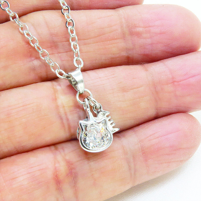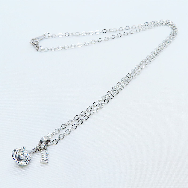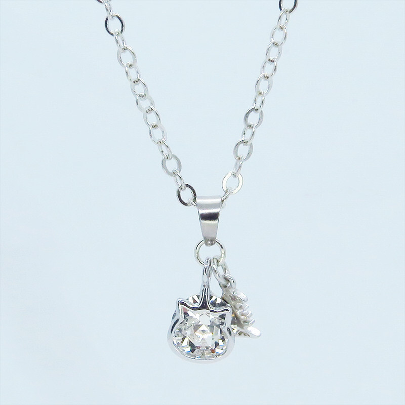 可愛い猫フェイスフレームにキラキラと輝く大きめラウンド型スワロフスキークリスタルをセットしたコンパクトなペンダントネックレスです