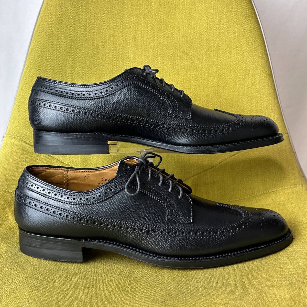 | 数回しか使用していない美品です。 アメリカ メリーランド州ボルティモアの洋服店別注のペアです。 正確な年代はわかりませんが少し古そうです。 前半分がコットンライニングで、ベロ裏はスムースレザーとなります。 79年か89年の製造ではないかと思います。 AAAウィズとなり、現行のサイズ換算をすると、7.5Dくらいを履かれている方が履けるサイズとなります。 | ||||||