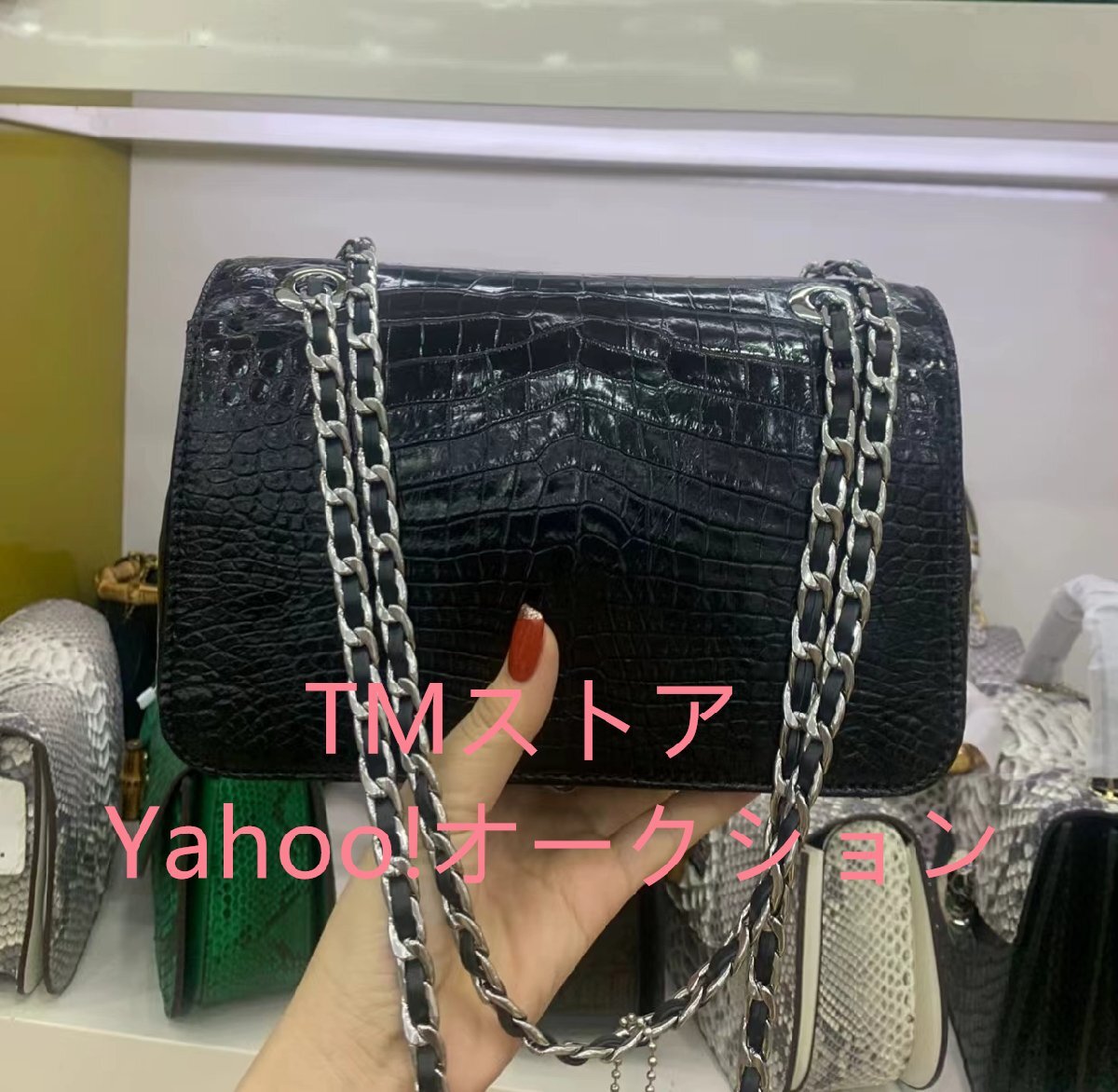 半艶 クロコダイルレザー チェーン ショルダーバッグ ワニ革 レディースバッグ ハンドバッグ 2WAY 斜めがけ 肩掛け チェーンバッグ