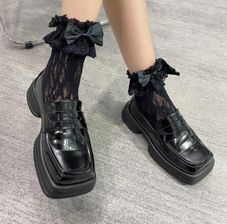 LRM558★レディース  厚底4cm パンプス ローファー 身長アップ 柔らか 通勤 通学 森ガール 原宿風