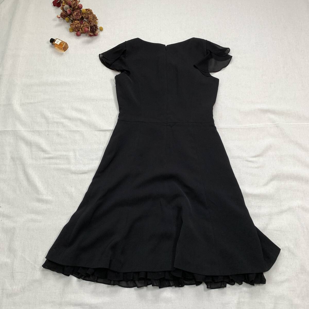裾にも可愛いフリルが付いていて堅苦しくすぎないドレスワンピースです。