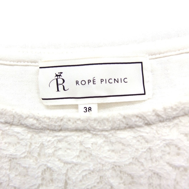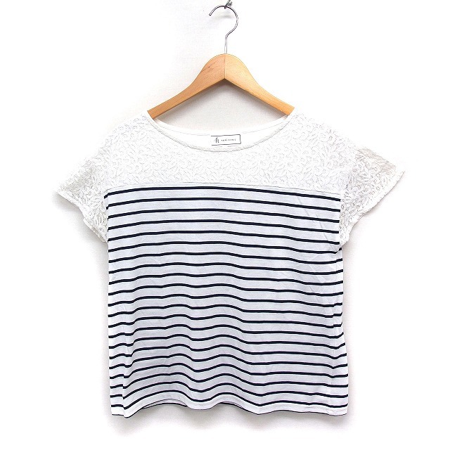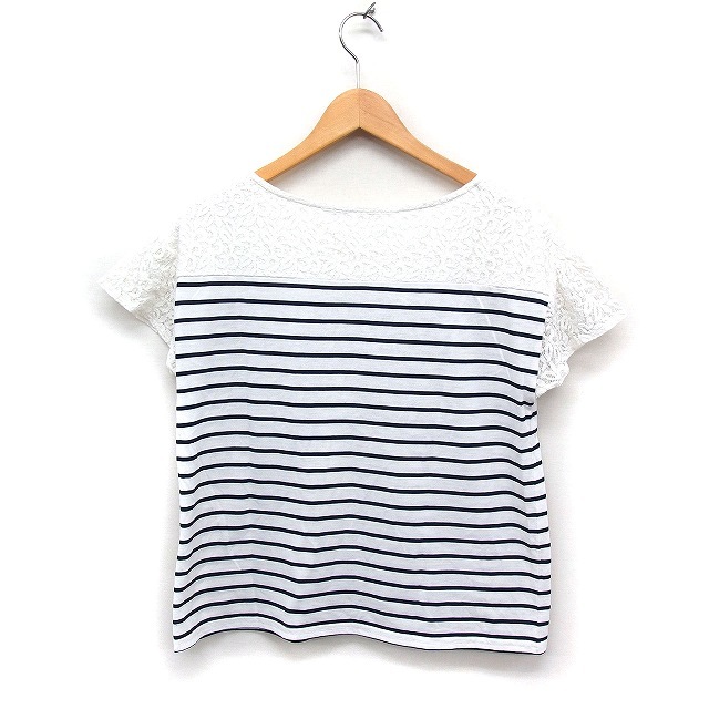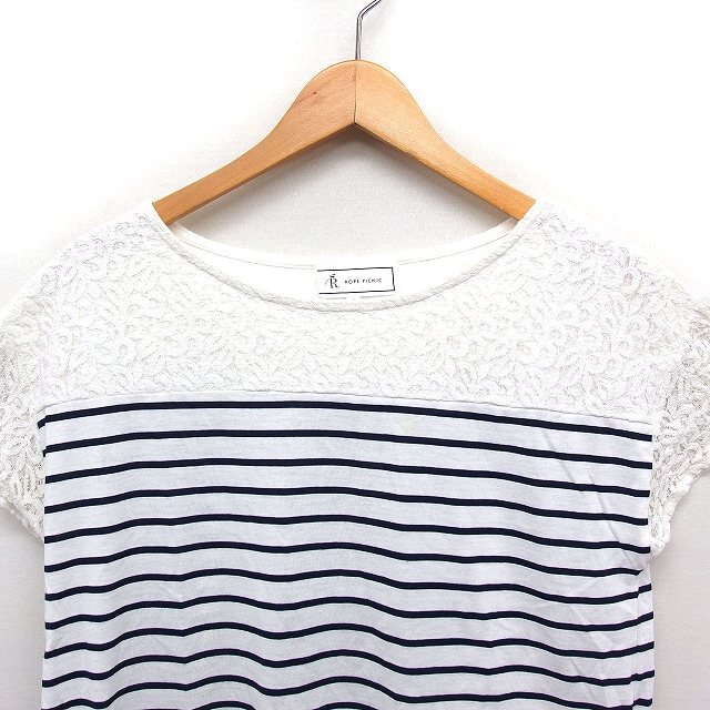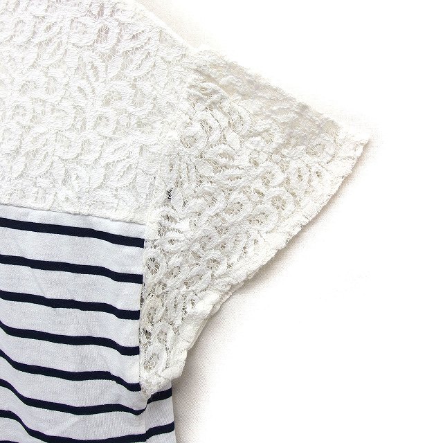ロペピクニック ROPE Picnic ボーダー カットソー Tシャツ 切替 レース キャップスリーブ 38 ホワイト 白 /FT11 レディース