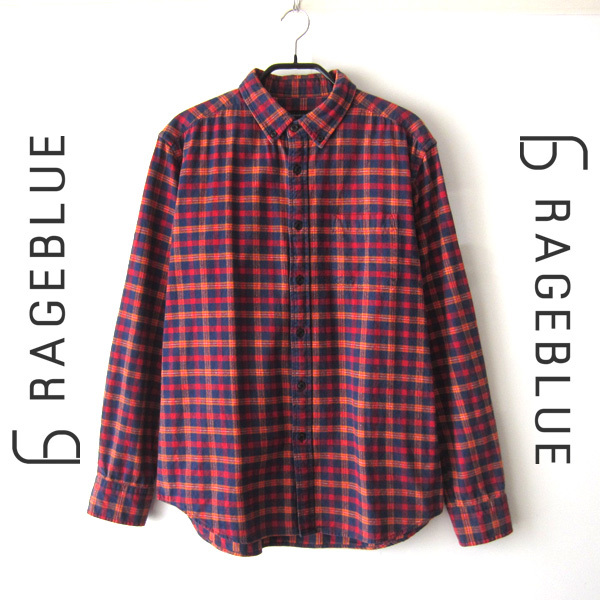 美品 RAGEBLUE/レイジブルー★ チェック柄 ボタンダウンシャツ L