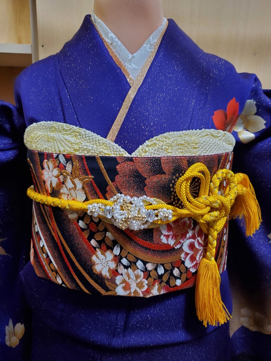 帯揚げ、帯締め、伊達襟、刺繍半襟 付いてます。