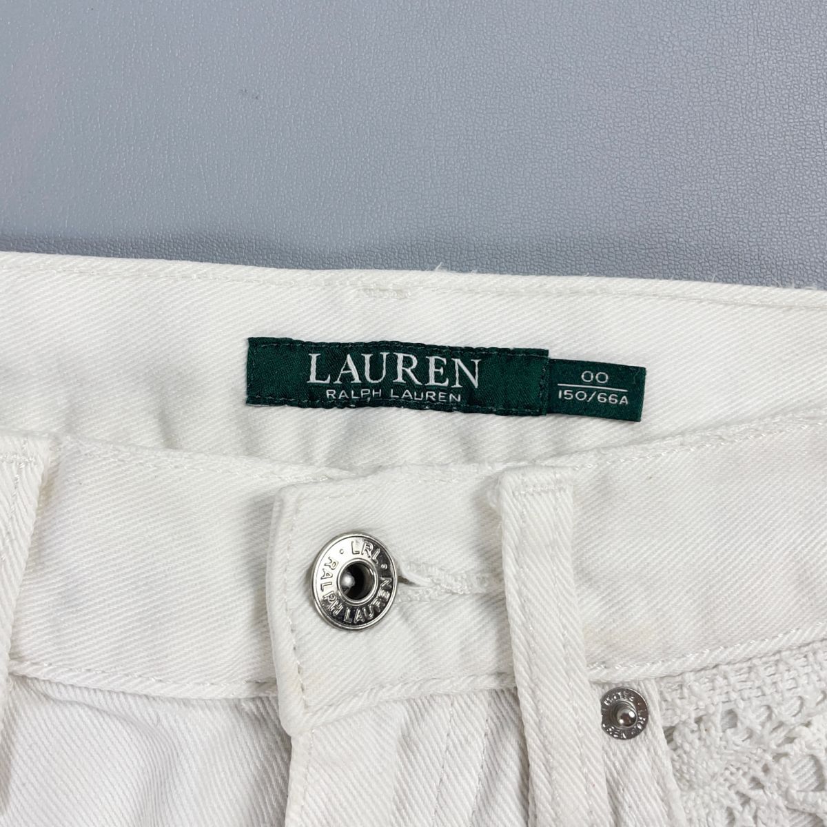 LAUREN RALPH LAUREN ラルフローレン 部分レース デザイン刺繍 ホワイトデニムパンツ ボトムス レディース 白 サイズ00*OC374