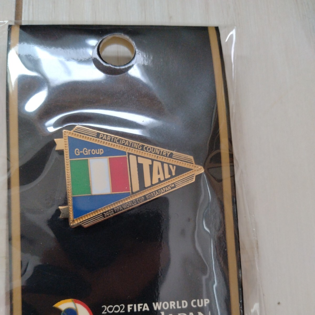 2002年日韓ワールドカップのペナントピンバッジ、Gグルーブのイタリアです。幅が約32ミリ。袋に入ったまま未開封、公式ロゴシールついてます。ファンの方の入札お待ちしております。