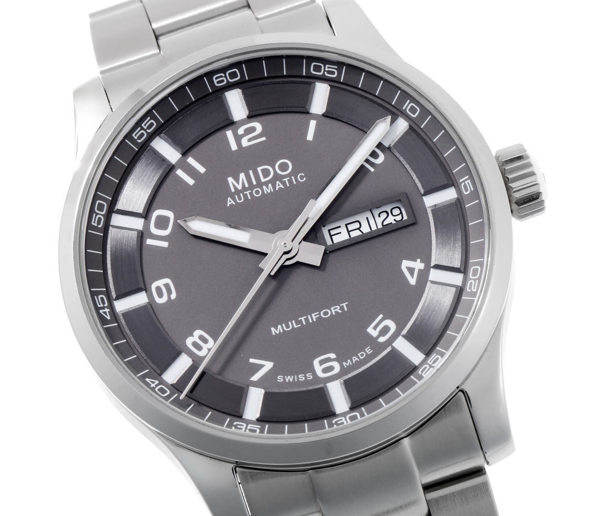 目立つダメージはありません。-ミドーの機械式ラウンドウォッチ。80時間パワーリザーブ。
