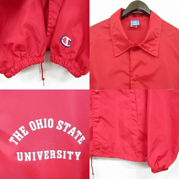 90s ★USA製★ サイズ L champion コーチ ジャケット ナイロン ブルゾン ジャケット レッド チャンピオン 古着 ビンテージ 4M0105