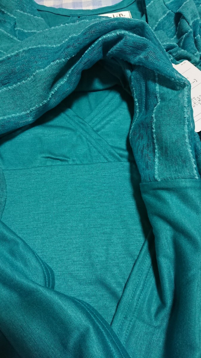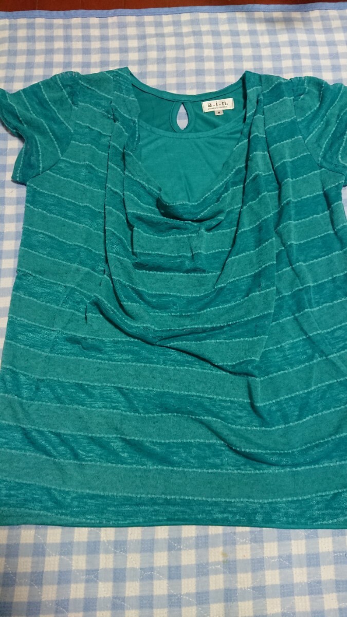 @401☆未使用・保管品☆授乳服☆麻混 ドレープチュニック 緑М①