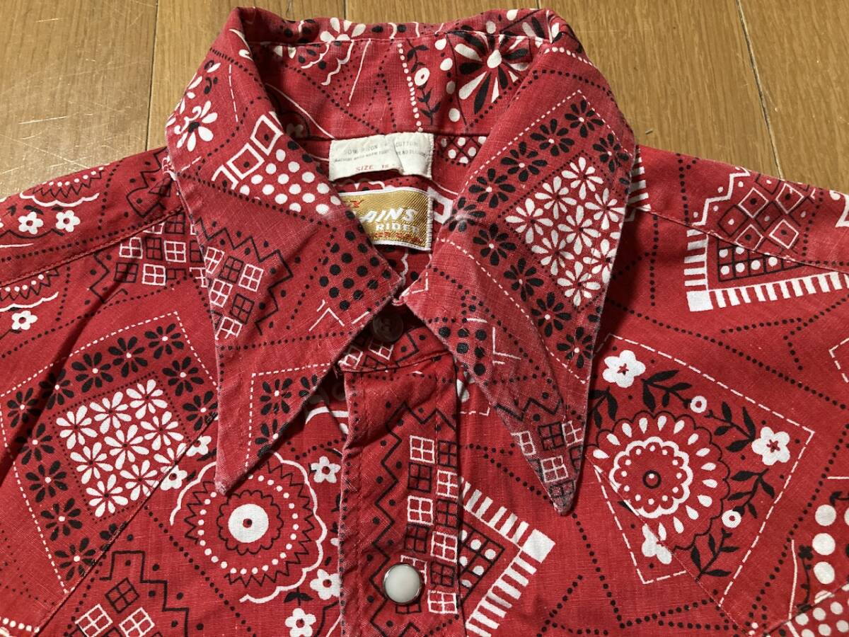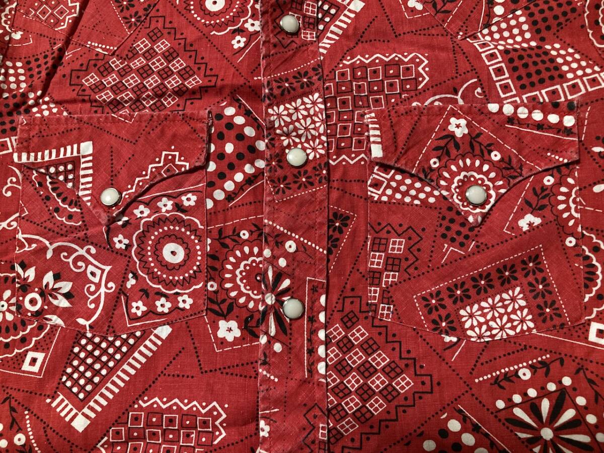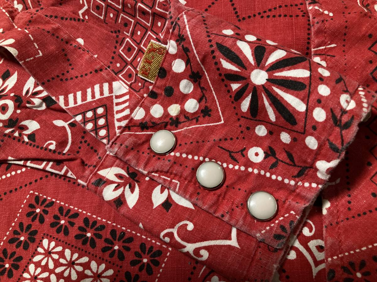 商品名:ビンテージ ELY バンダナ柄 長袖ウエスタンシャツ サイズ:表記15-32平置き:肩幅41cm 身幅(脇下~脇下)50cm 着丈(襟付根~裾)78cm 袖丈(肩~袖裾)58cm ※素人採寸の為多少の誤差はご了承ください カラー:レッド、ホワイト、ブラック 状態:MADE IN USA(サイズタグの裏側に表記あり)。レーヨン50%コットン50%。スナップボタン(トップ除く)。スナップボタンフラップポケット×2。右袖先にELYタグ。幾分かの使用感、スレ、アタリ等ありますが目立ったダメージ無く雰囲気良いと思います。 発送方法:レターパックプラス(配達記録付600円)orレターパックライト(配達記録無し430円) ※古着になりますので神経質な方、ご理解の無い方の御入札はお控え下さい。送料、振込手数料は落札者様の御負担となります。ノークレーム、ノーリターンでお願い致します。