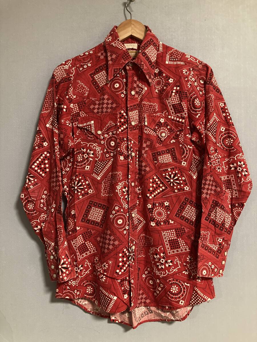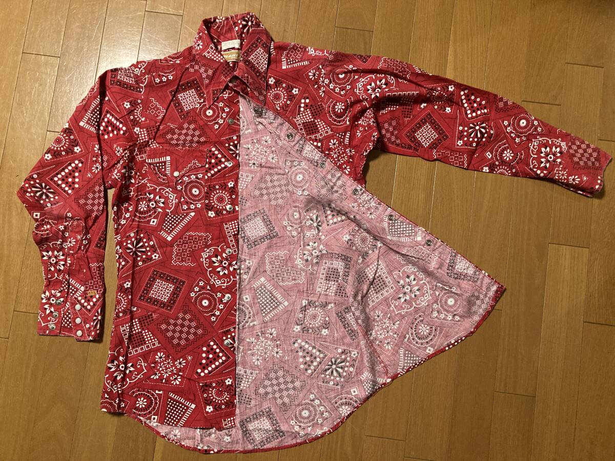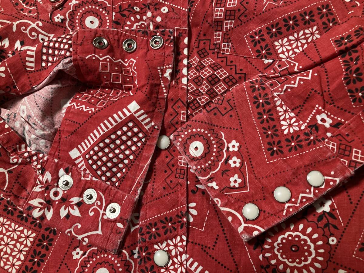 商品名:ビンテージ ELY バンダナ柄 長袖ウエスタンシャツ サイズ:表記15-32平置き:肩幅41cm 身幅(脇下~脇下)50cm 着丈(襟付根~裾)78cm 袖丈(肩~袖裾)58cm ※素人採寸の為多少の誤差はご了承ください カラー:レッド、ホワイト、ブラック 状態:MADE IN USA(サイズタグの裏側に表記あり)。レーヨン50%コットン50%。スナップボタン(トップ除く)。スナップボタンフラップポケット×2。右袖先にELYタグ。幾分かの使用感、スレ、アタリ等ありますが目立ったダメージ無く雰囲気良いと思います。 発送方法:レターパックプラス(配達記録付600円)orレターパックライト(配達記録無し430円) ※古着になりますので神経質な方、ご理解の無い方の御入札はお控え下さい。送料、振込手数料は落札者様の御負担となります。ノークレーム、ノーリターンでお願い致します。
