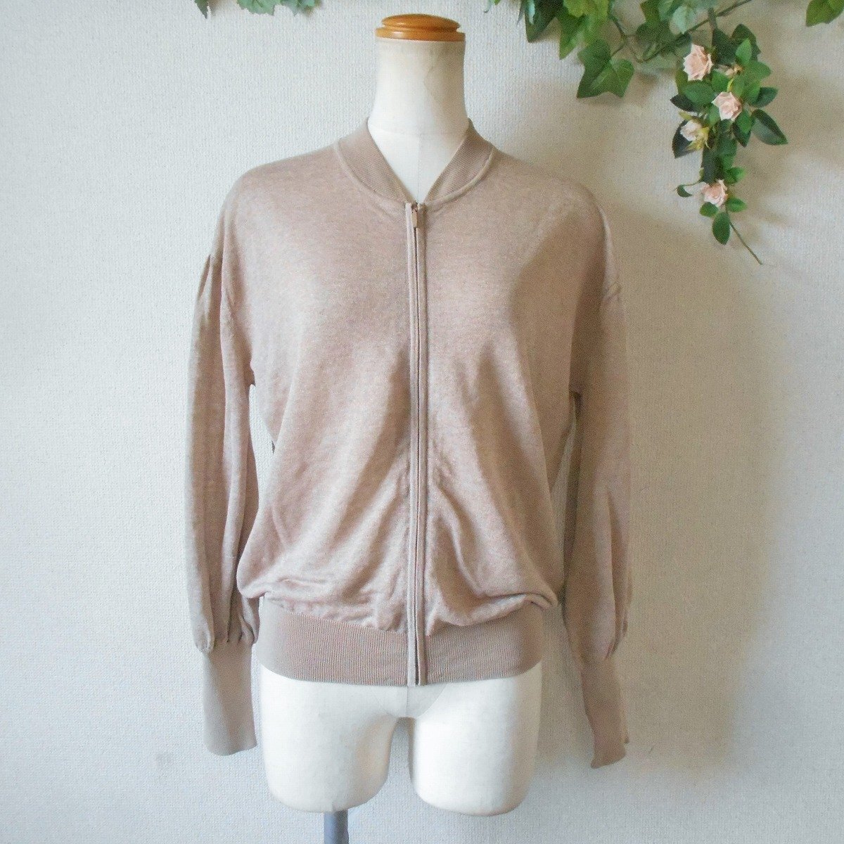 【ポイント】ダブルスタンダードクロージング、ソブのジップアップブルゾンになります。お色はベージュ系で細かいゴールドラメが全体に入っています。薄手の春夏を中心に着ていただけるお品で、とってもお洒落なデザインです。