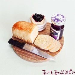 臨場感あふれる、カッティングボードです!かわいい~おいしそう~!このまま飾っても、ドールハウスのキッチンに置いても、いいですね!※小物はすべて接着されています。※手作りのため、パンの色、形、ジャムの塗り方など、個体ごとに微妙に異なります。手作りの温かみとご了承いただけますと幸いです。ボードは木製、お皿は陶器、ジャム瓶はガラス、ナイフはアルミ、パンは粘土です。ボードの直径40?。高さ21mm。