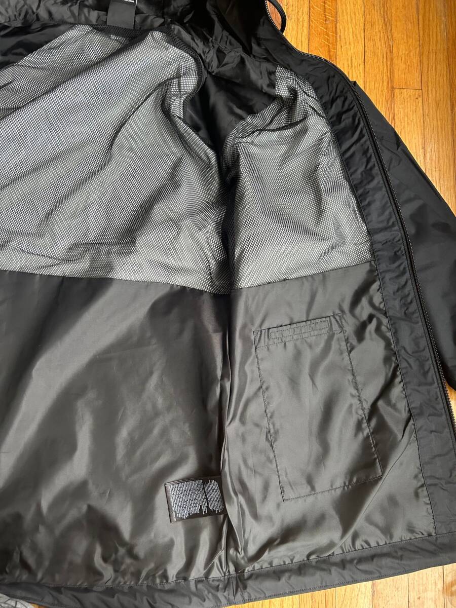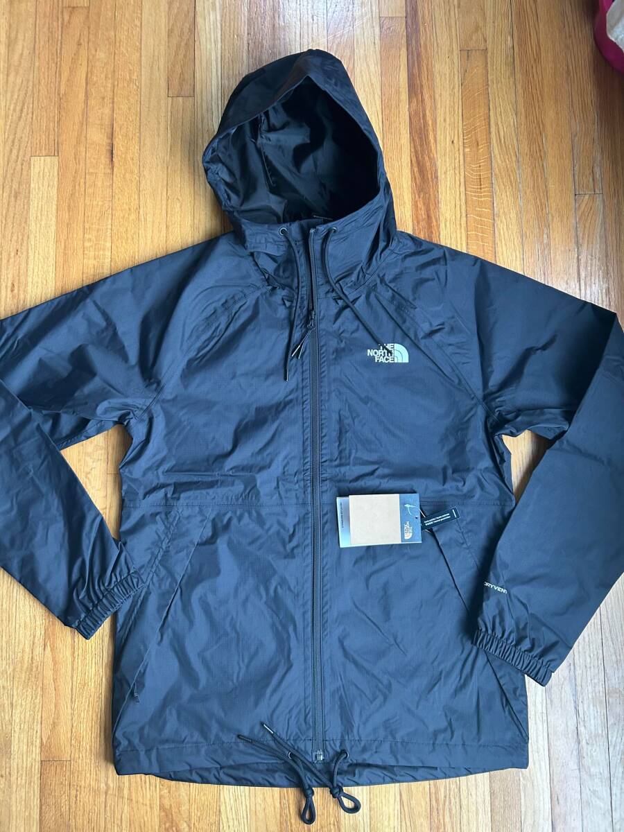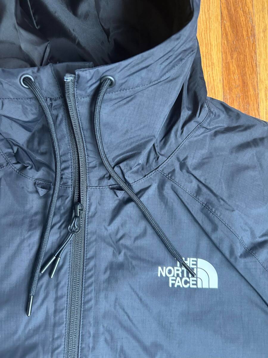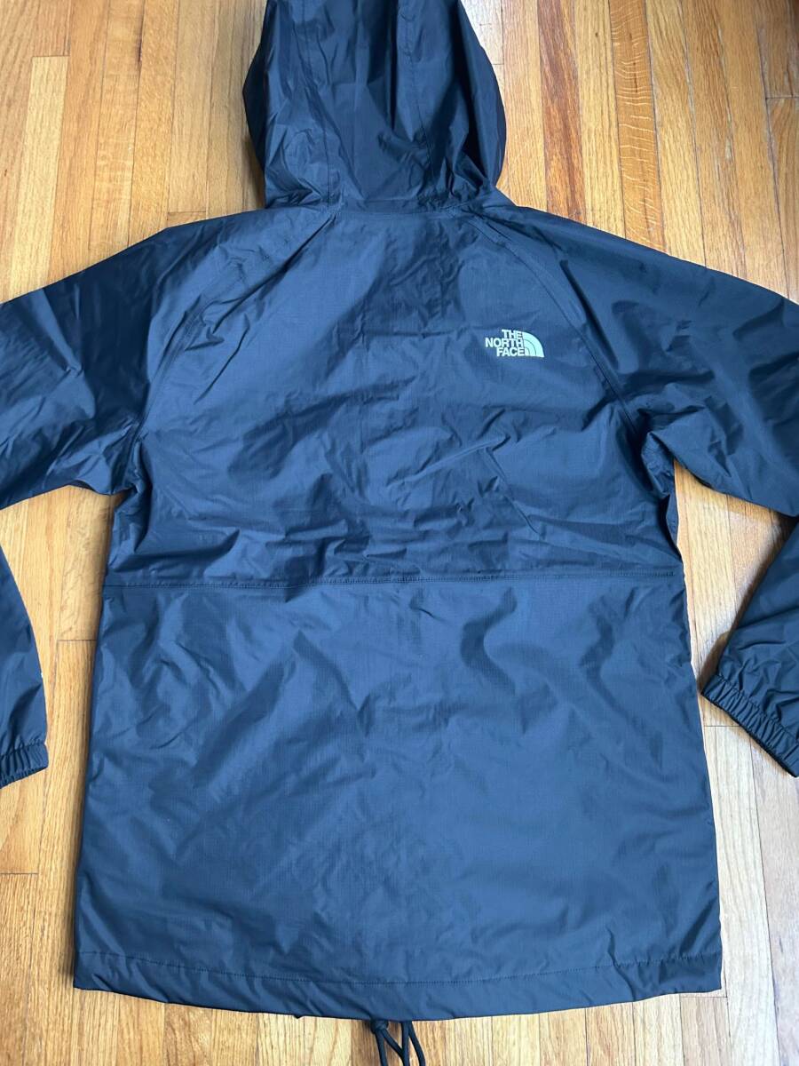 購入先:アメリカのノースフェイスアウトレット 状態:新品タグ付き アメリカサイズ:S 日本サイズ:大体Mくらい 実寸:胸囲112cm、袖82cm、着丈70cm 素材:ナイロン100%、ポリエステル100% インナーはメッシュ地仕様、マジックテープ付きの携帯電話が入りそうな大きさのポケットが付いています。フードの取り外しはできないデザインです。 | |||
