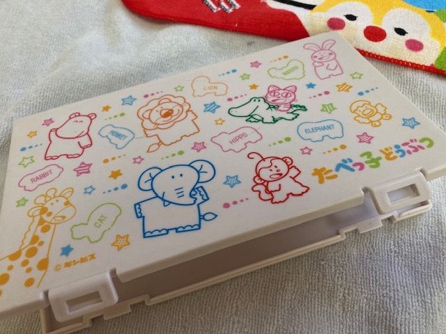 とても可愛い、たべっ子どうぶつ柄樹脂製小物入(収納時:約19×11×1cm)&ディズニーTSUM TSUM柄タオル2枚(約30cm角.20cm角)&JAちょリスホッチキス高さ約6cm、未使用ですが新品ではありませんので詳細はご了承ください!お気に召した方はいかがですか?