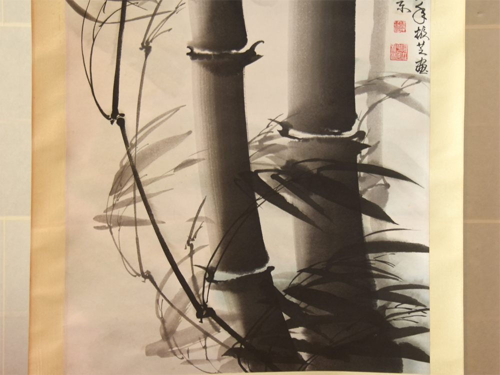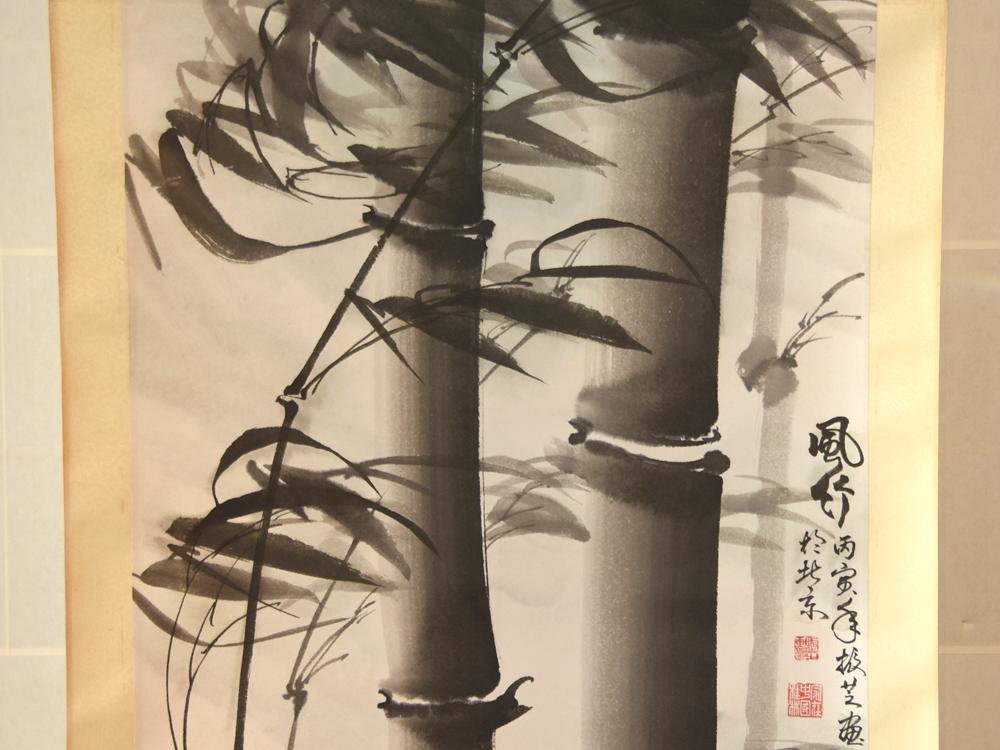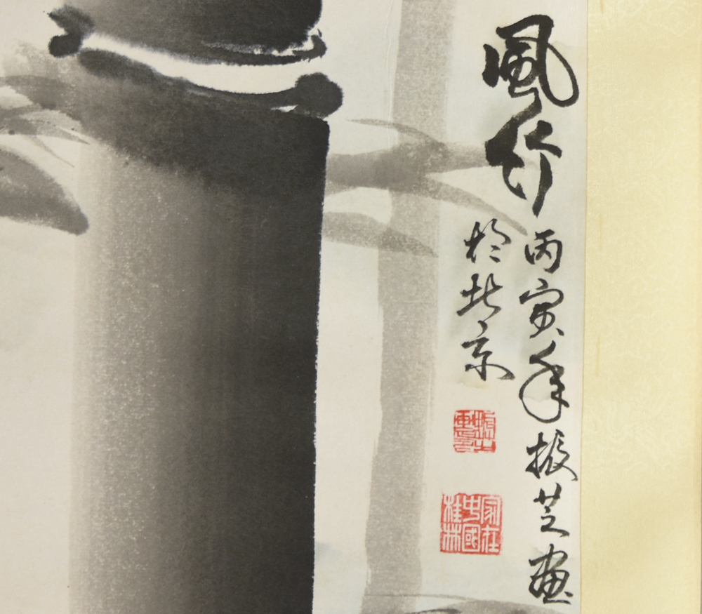 【真作】中国美術 林振芝「風竹図」淡彩画 紙本 中国書画 掛軸 掛け軸 山水 軸 肉筆 |
