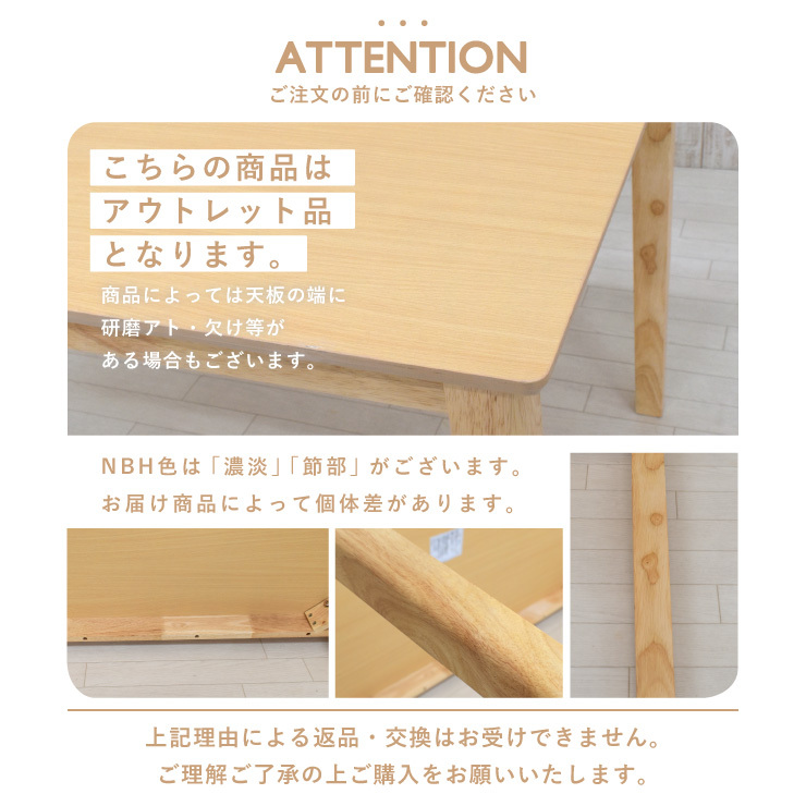 ※NBH色はクリア塗装の商品となりますので、元々の木の素材の濃淡や節部がございます。
