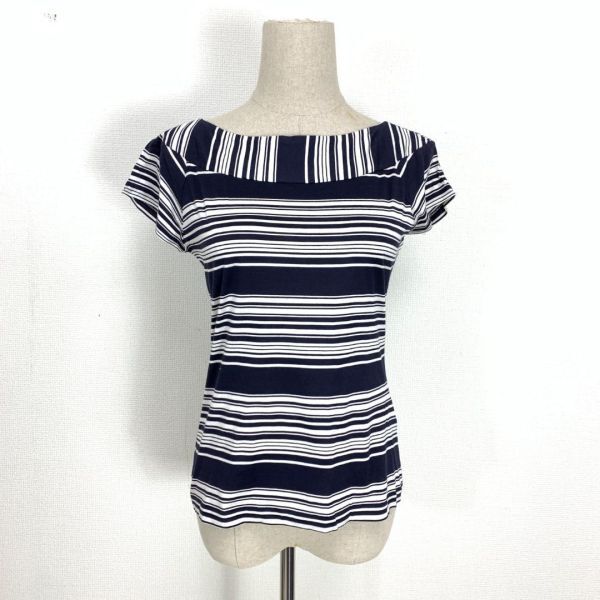 A2828 ボールジィ アンサンブル 綿 七分袖 半袖 ボーダーBallsey コットン ネイビー ホワイト ボートネック カーディガン 紺 白 S相当