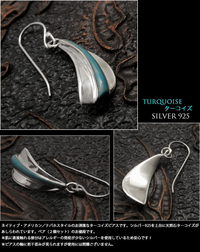 商品詳細 ネイティヴアメリカン・ナバホ族の定番モチーフであるフェザーをデザインしました。中央にターコイズがインレイされたオシャレなピアスです!ターコイズの欠片をインレイ加工しています。天然石のため画像とお色が異なる場合がございます。 ※肌に直接触れる部分はアレルギーの発症が少ないシルバーを使用しているため安心です! ※ピアスの軸に若干歪みが見られますが使用には問題ございません。 |