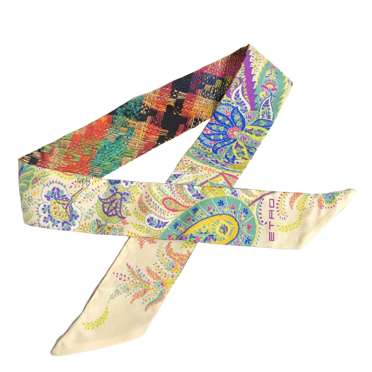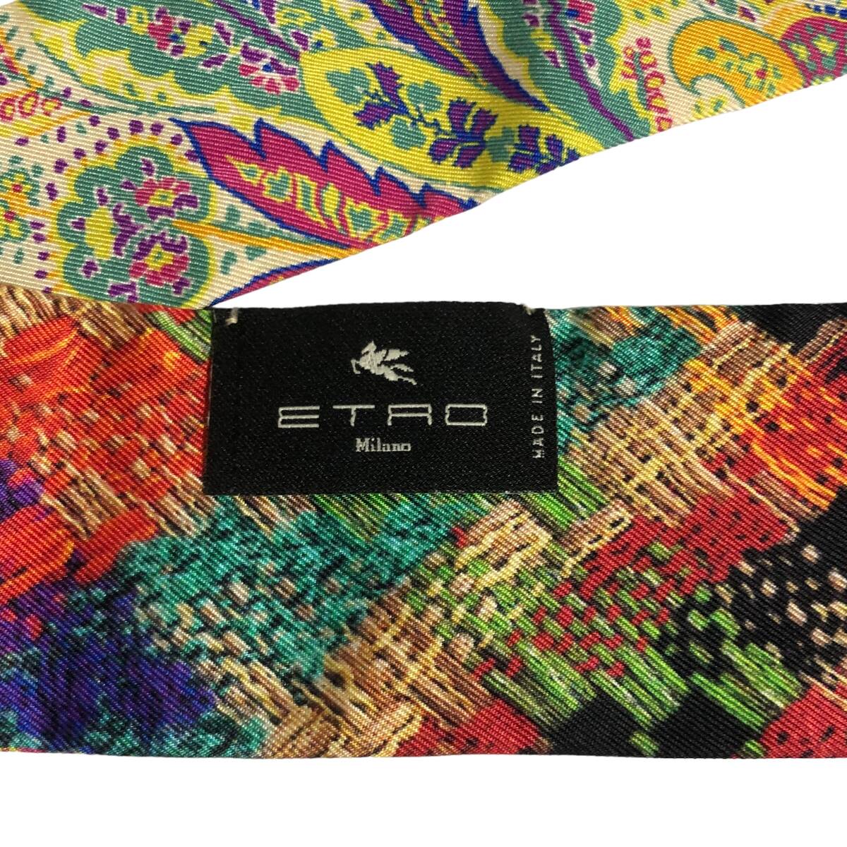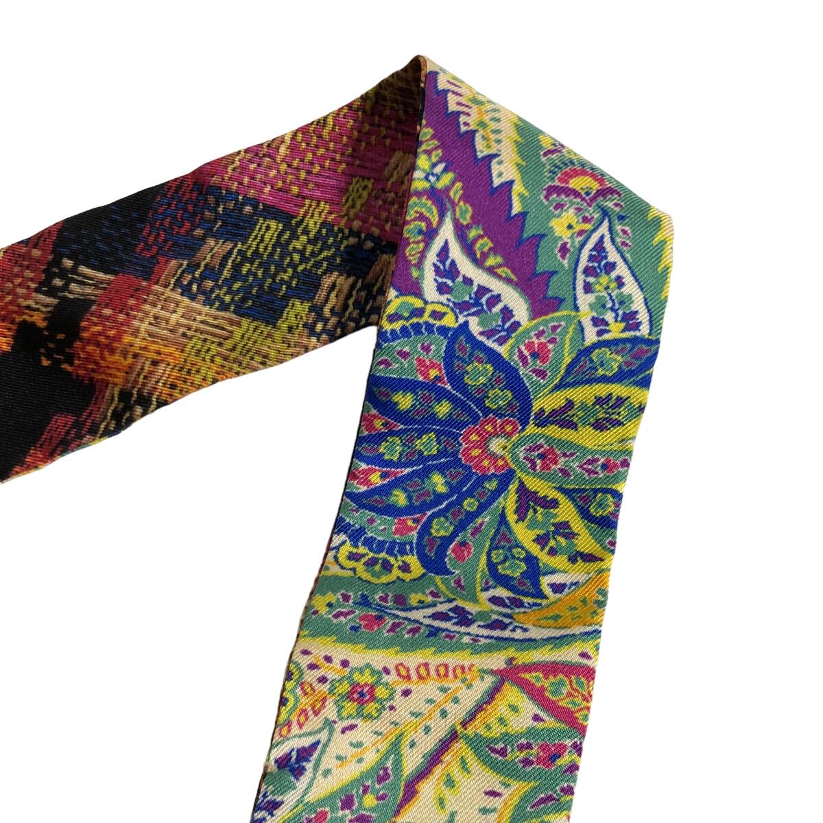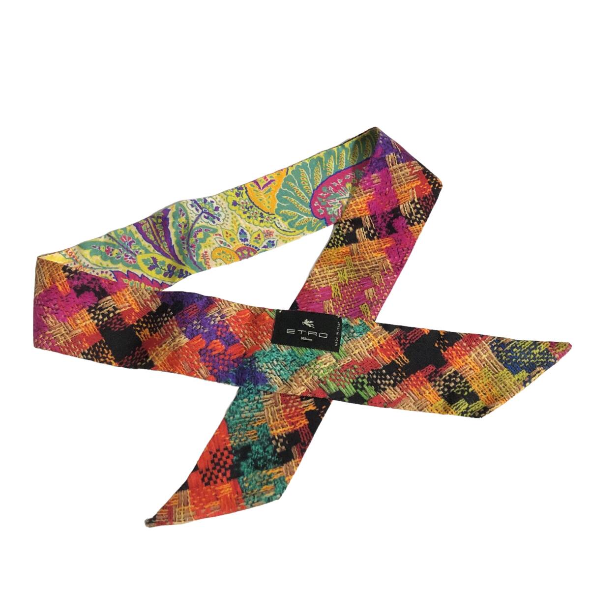 ETRO エトロ シルク ペイズリーナ リボンスカーフ ペイスリー柄 イタリア製