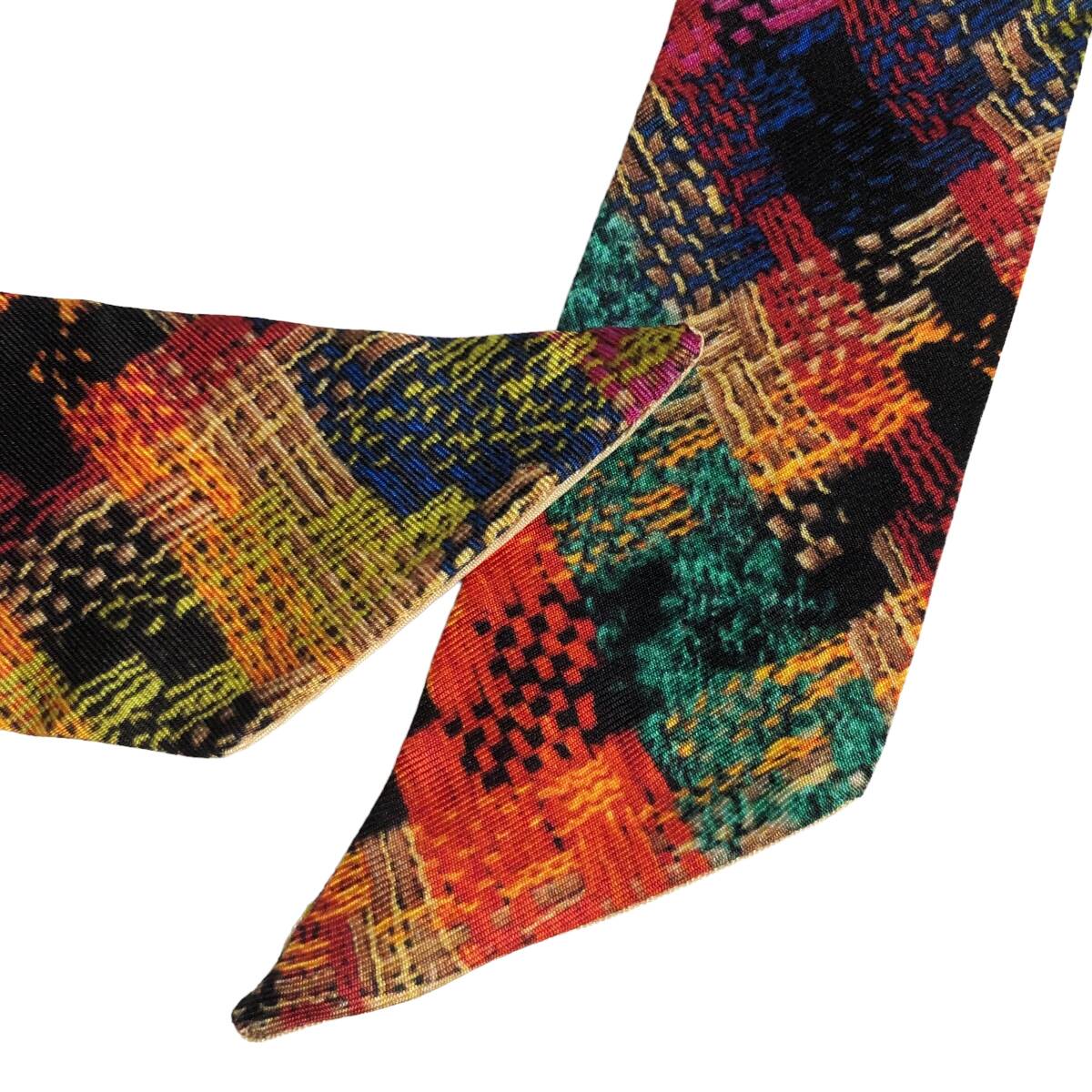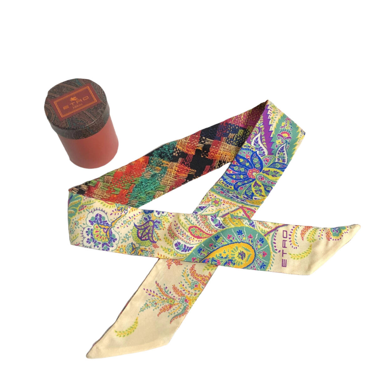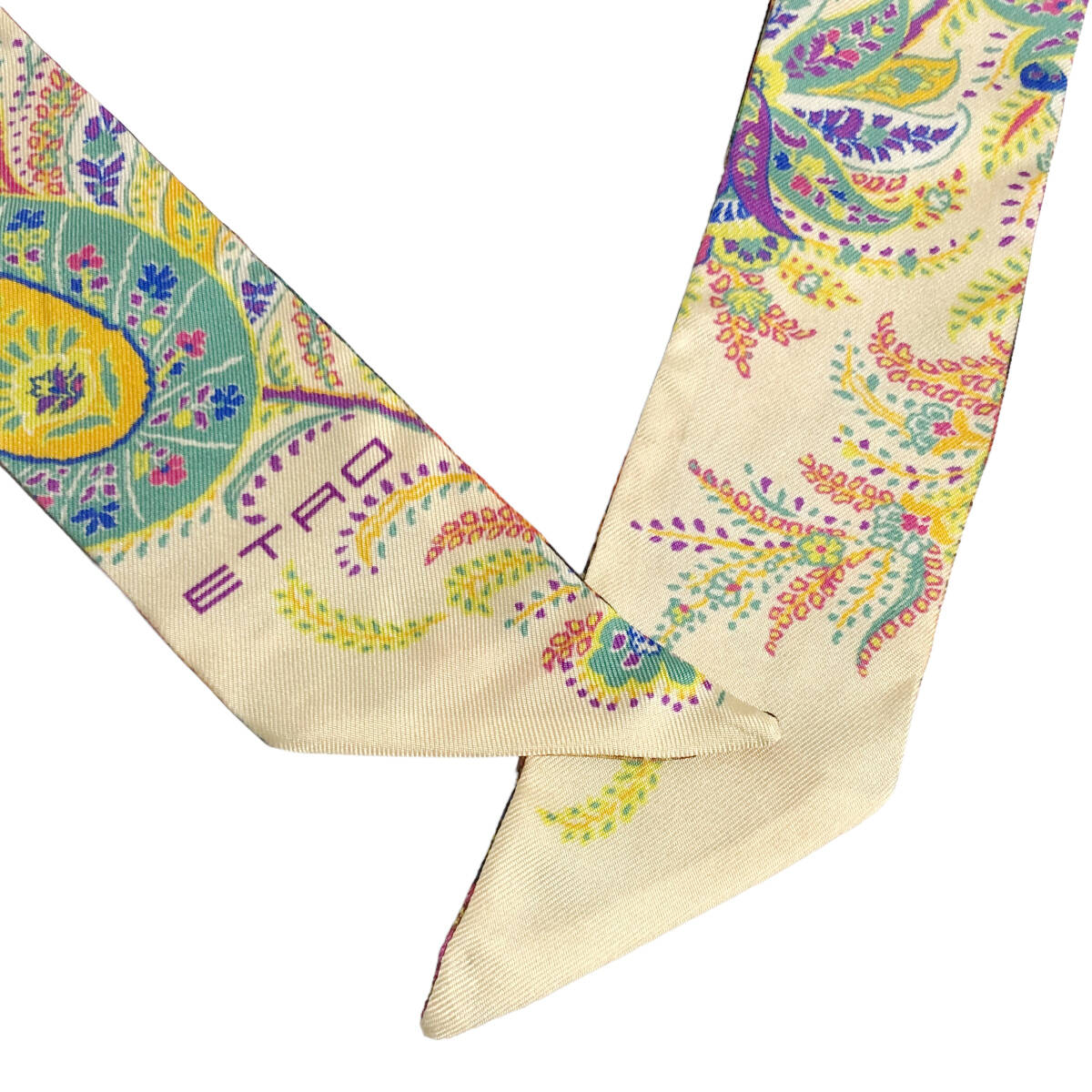 ETRO エトロ シルク ペイズリーナ リボンスカーフ ペイスリー柄 ベージュ マルチカラー イタリア製 AC1
