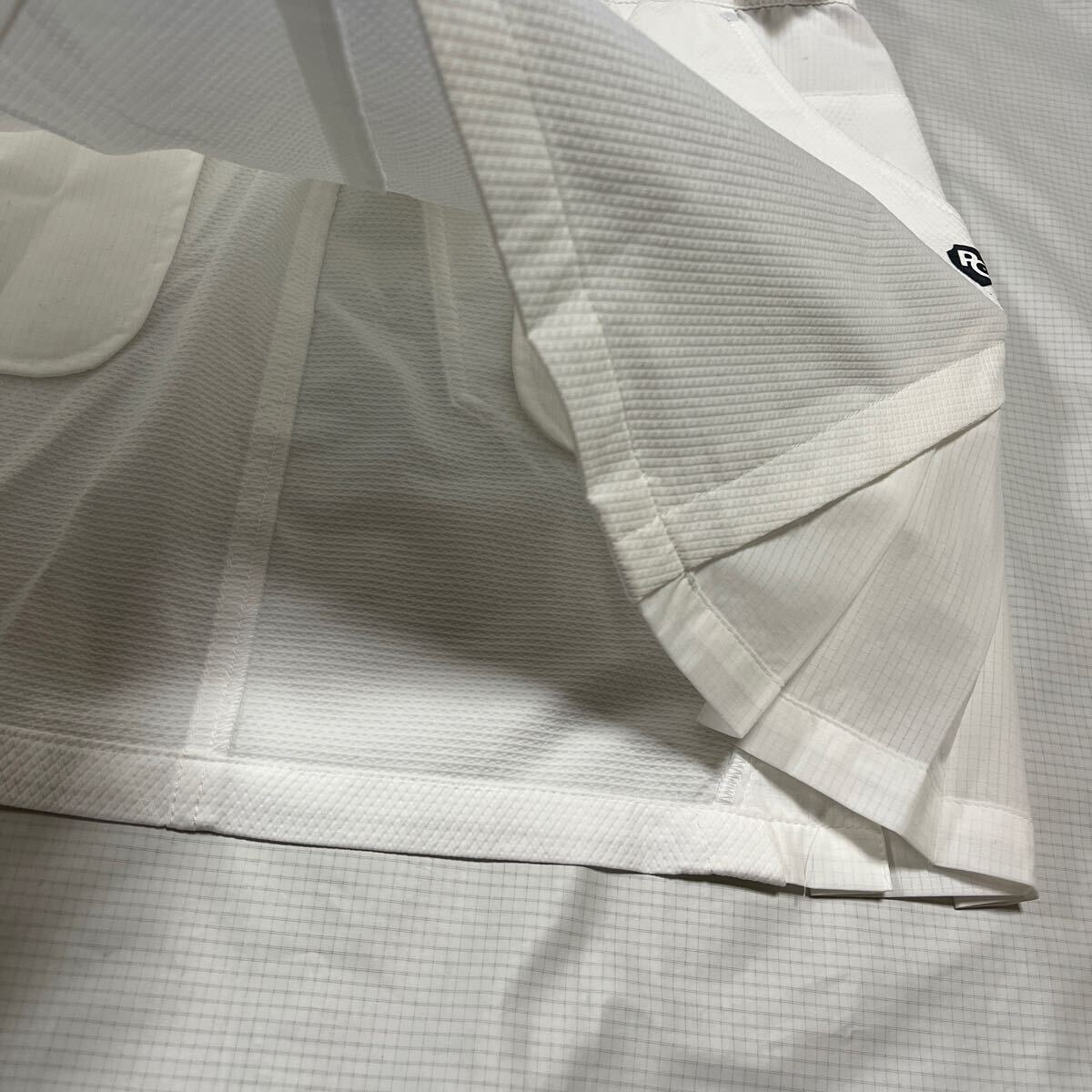 裾のプリーツがアクセントの、ストレッチダイヤドビー×ドットエアースカート。ウエストは総ゴム仕様で、ストレスフリーな履き心地。特殊原糸と織物構造をベースに、東レ独自の加工技術を駆使することで通気孔を発現させた快適素材のドットエアーを使用。メッシュ調の通気孔がある素材ため、軽量性と通気性に優れ暑いシーズンでも快適。さらに、TEXBRIDの優れたストレッチ性と、汗による不快なムレを軽減する吸水速乾性にも優れ、より快適な履き心地。
