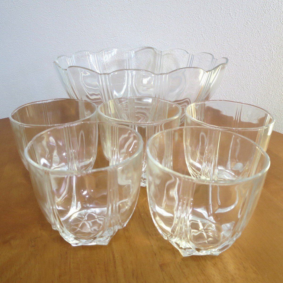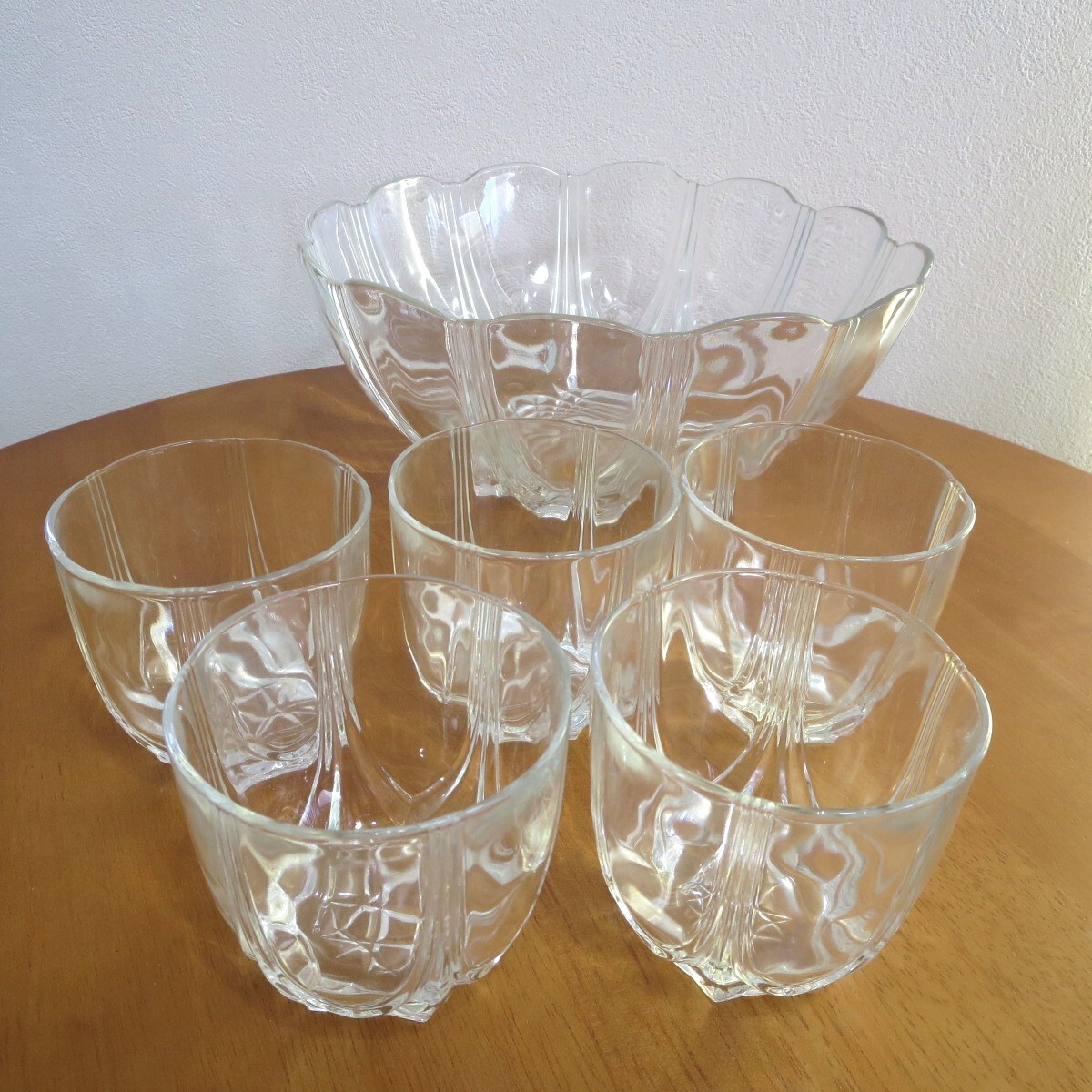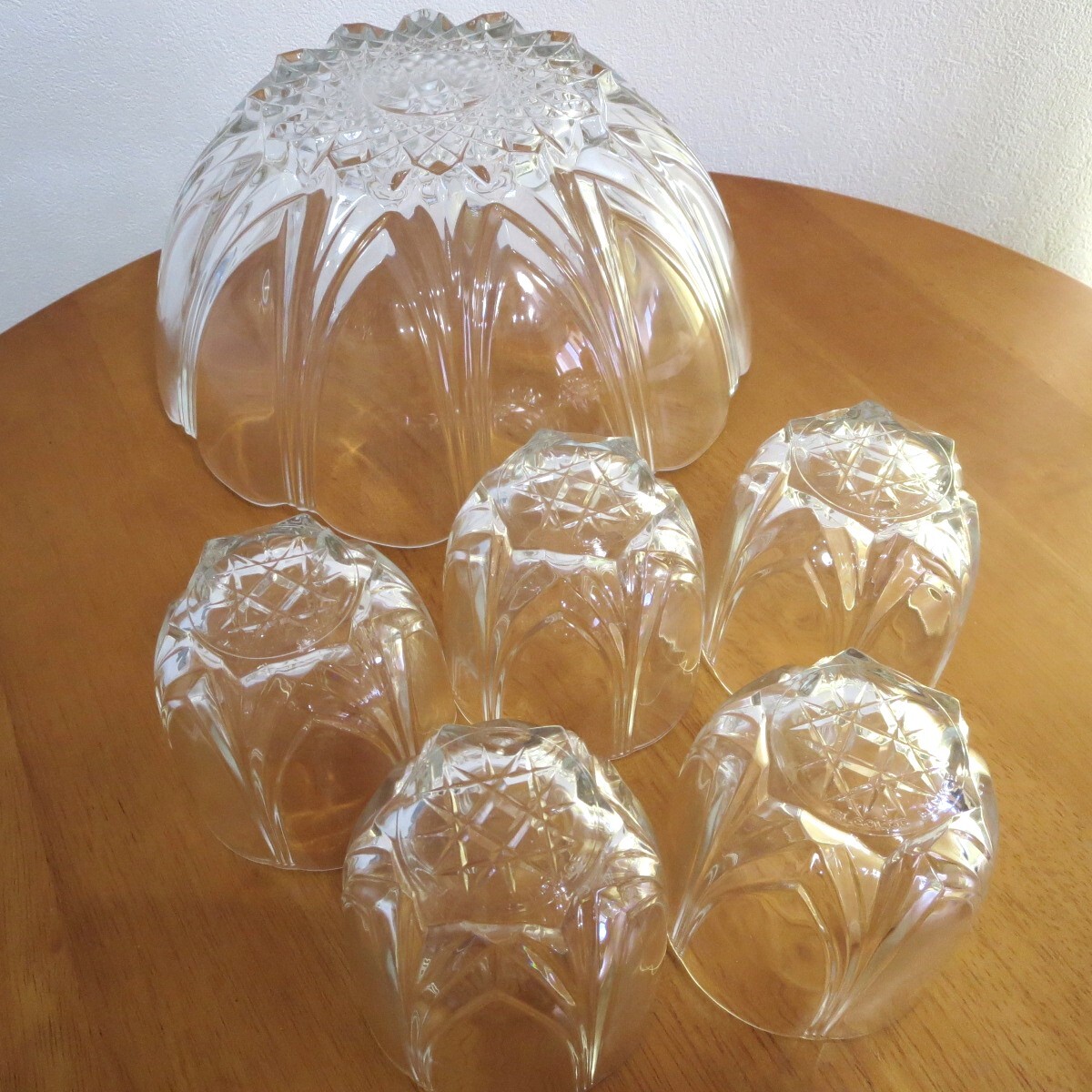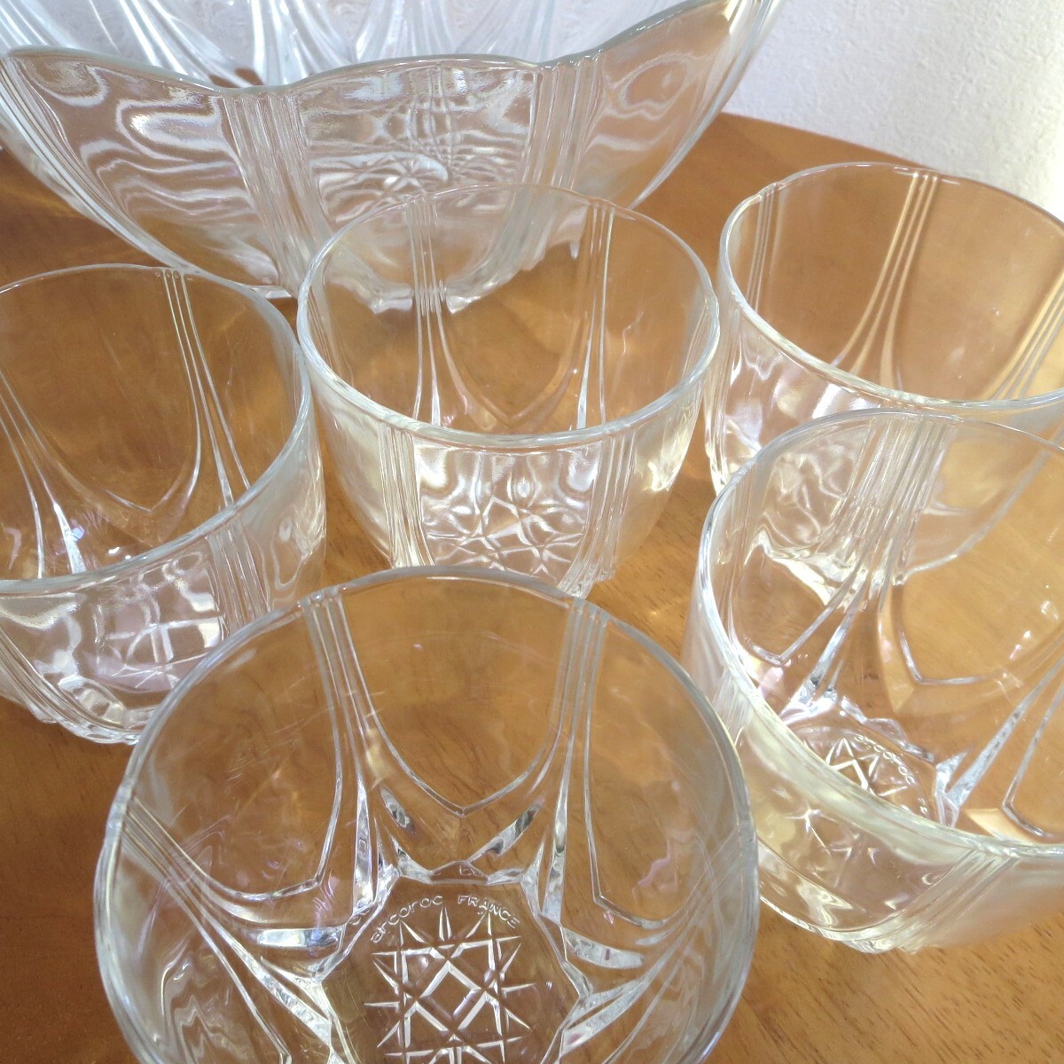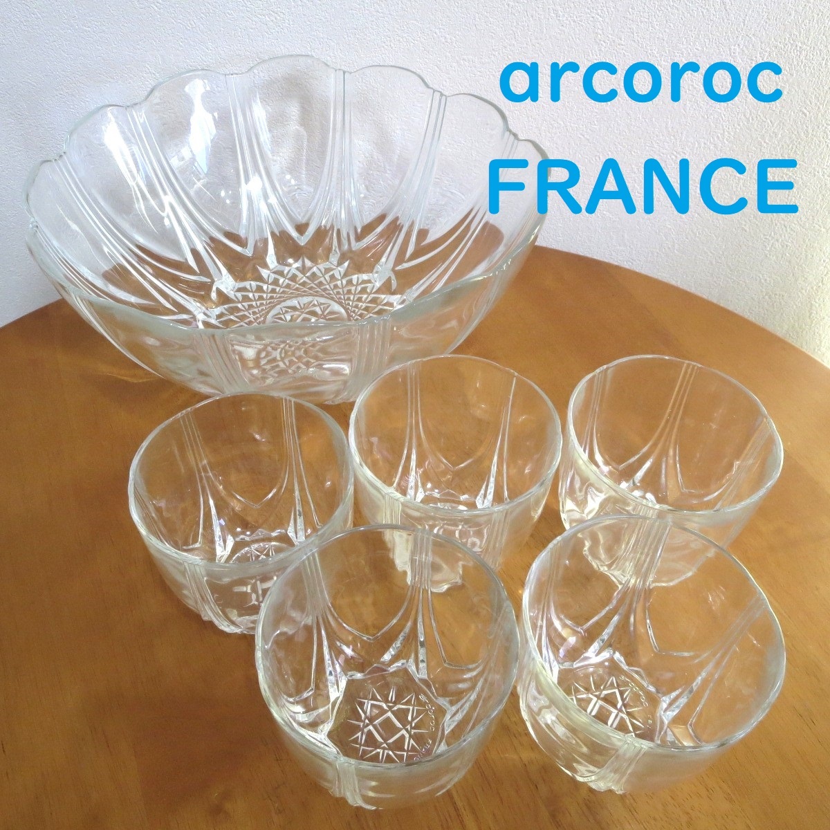 【未使用送料込♪】arcoroc FRANCE(アルコロック)ガラス デザートボールセット24cm 7.5cm フランス製 サラダボウル 素麺鉢 盛鉢 昭和レトロ